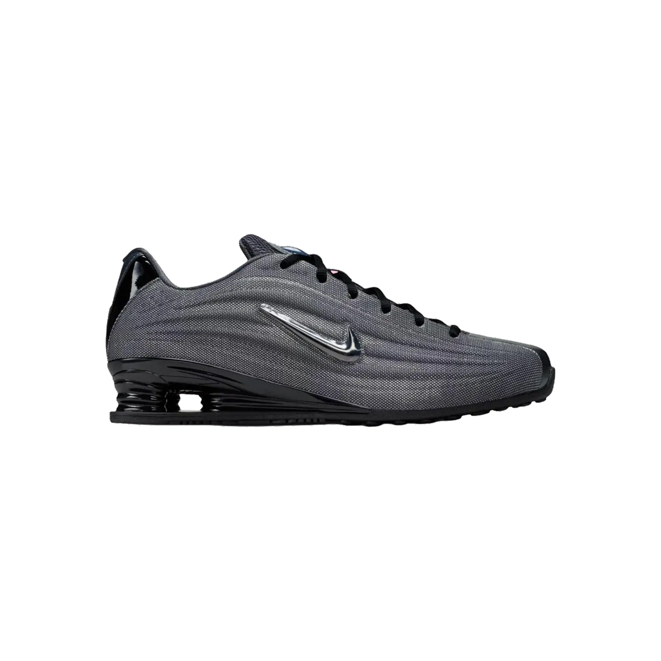 Механическая амортизация Shox снова в игре: модель с характерными «пружинами» из начала 2000-х опять в тренде — ее все чаще можно увидеть на улице. Nike поддержал интерес к силуэту коллаборацией с датским брендом Naked Copenhagen. У новинки акцент сделан на сдержанный монохромный дизайн: темно-серый текстильный верх, глянцевые черные элементы и металлический свуш