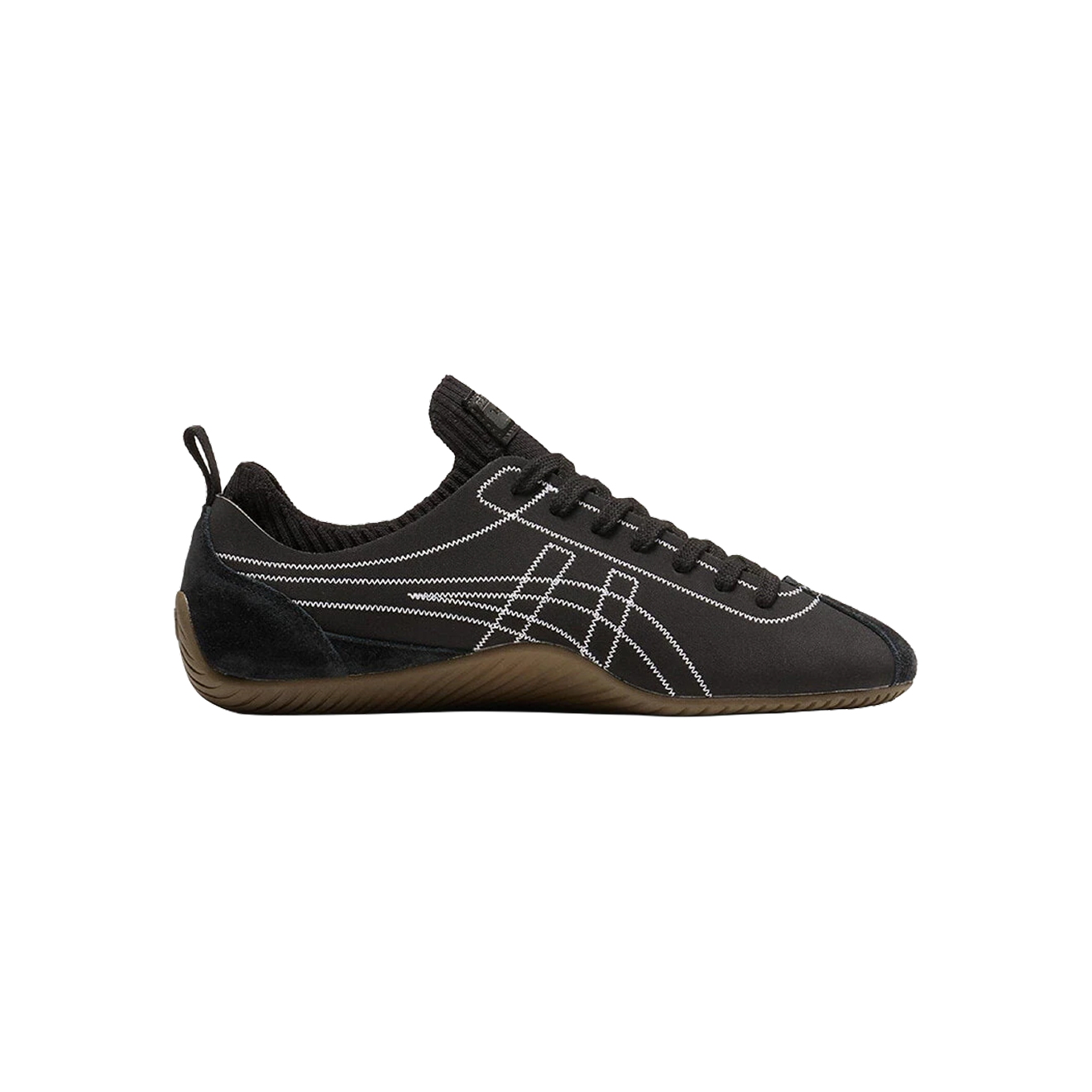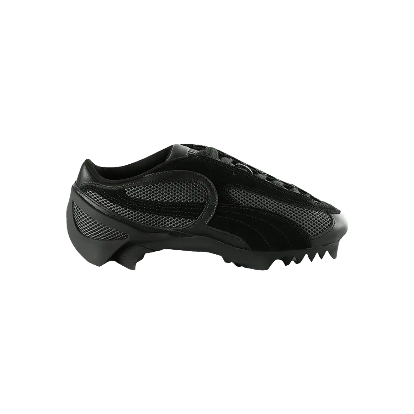 Puma Beisser продолжает линию смелых и нестандартных моделей бренда. В паре прослеживается силуэт футбольных бутс: вытянутая форма, плотная посадка и агрессивный рельеф подошвы. Почти монолитный черный дизайн выглядит футуристично, а верх из сетки и синтетических материалов добавляет легкости. Вариант для тех, кому надоели базовые пары и хочется добавить в гардероб что-то действительно заметное