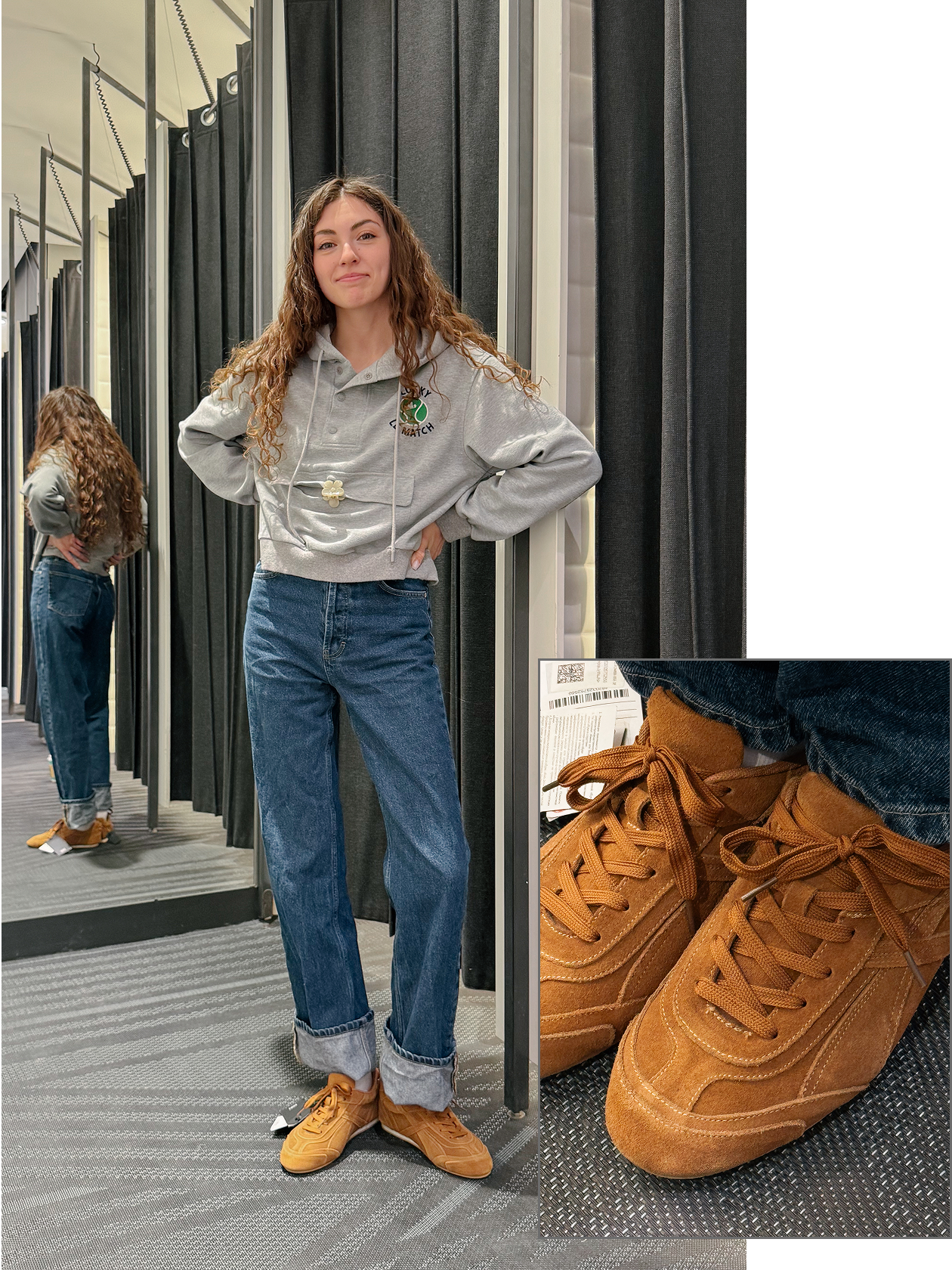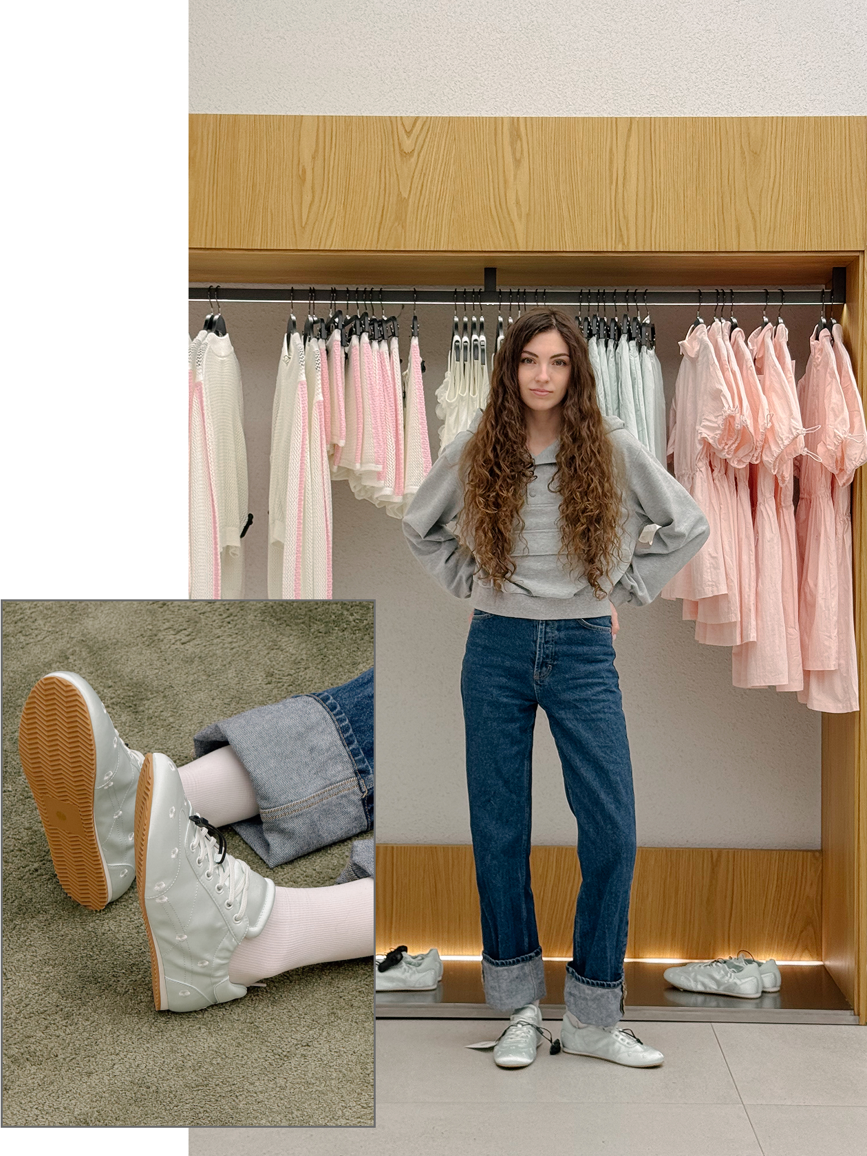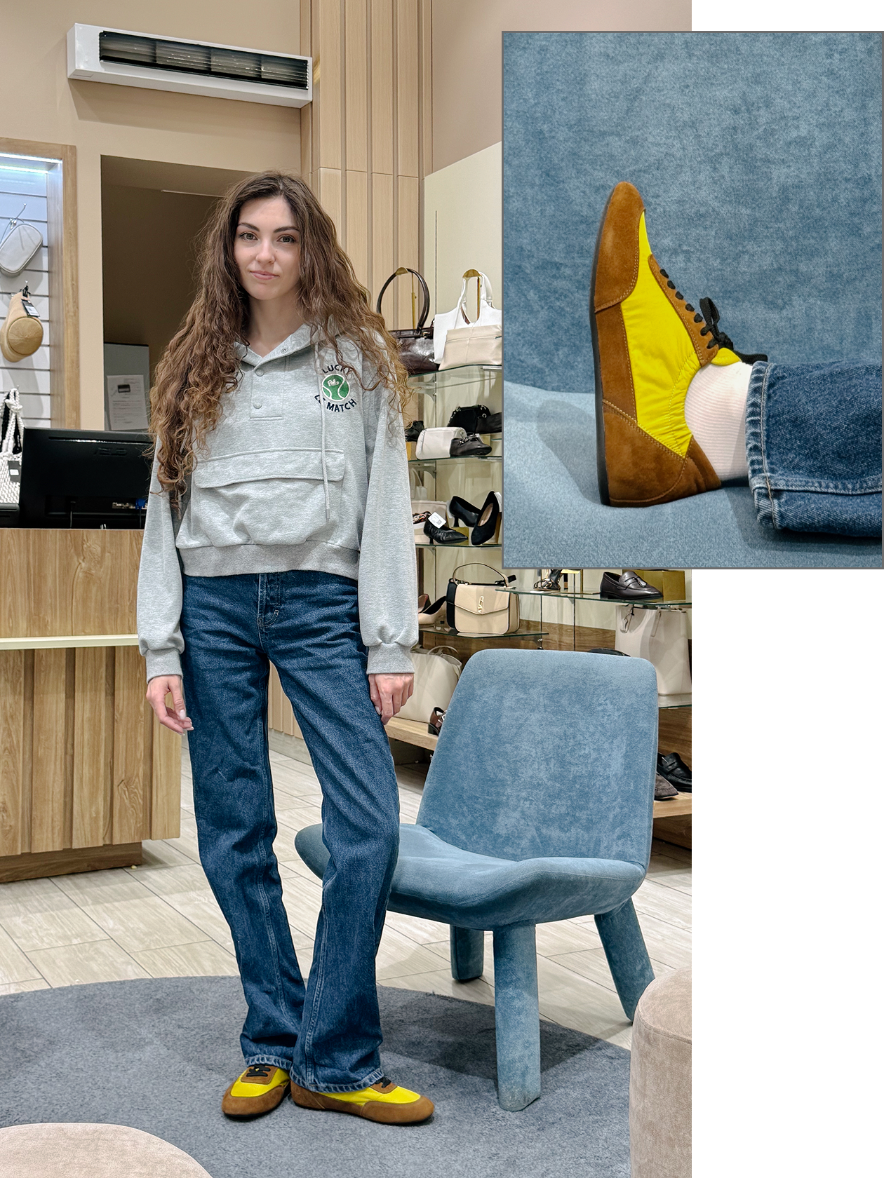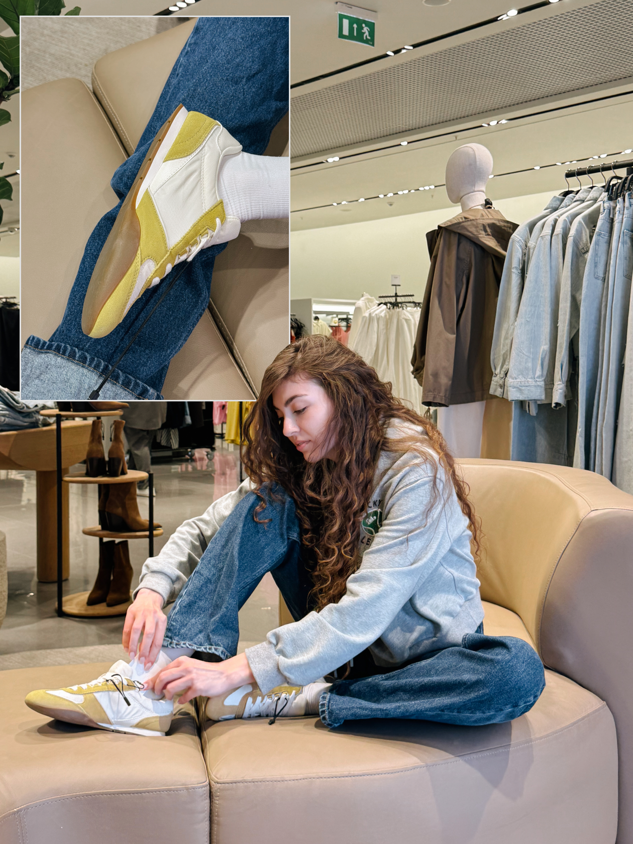 Массмаркет активно использует в производстве натуральные материалы и хорошо считывает запросы покупателей: практически в любом магазине вполне реально найти базовую или яркую пару актуального силуэта с кожей в составе. Еще я заметила, что ни у одной пары не видно клеевой прослойки между верхом и подошвой — это неожиданно и внушает доверие, но не умаляет риск того, что пара может развалиться через месяц активной носки: часто кроссовки выглядели хлипкими. Нужно иметь в виду, что скрупулезного внимания к деталям в массмаркете не найти.