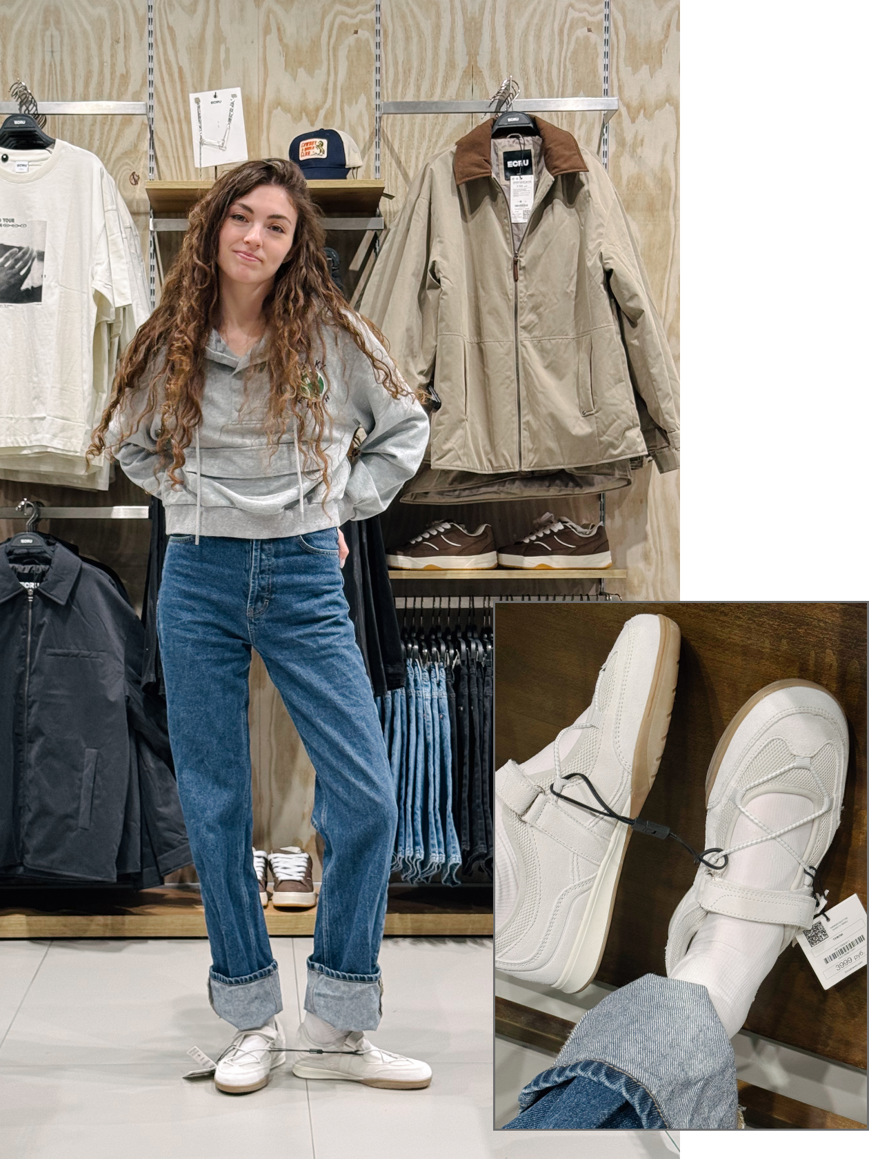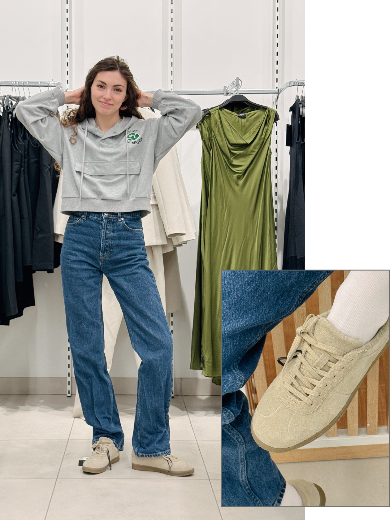 Привет! Я Полина, фешен-редактор Шопинга Т—Ж. Для этого материала я надела новые носки и отправилась в «Авиапарк», чтобы вживую потрогать, померить и сфотографировать для вас бюджетные кроссовки.