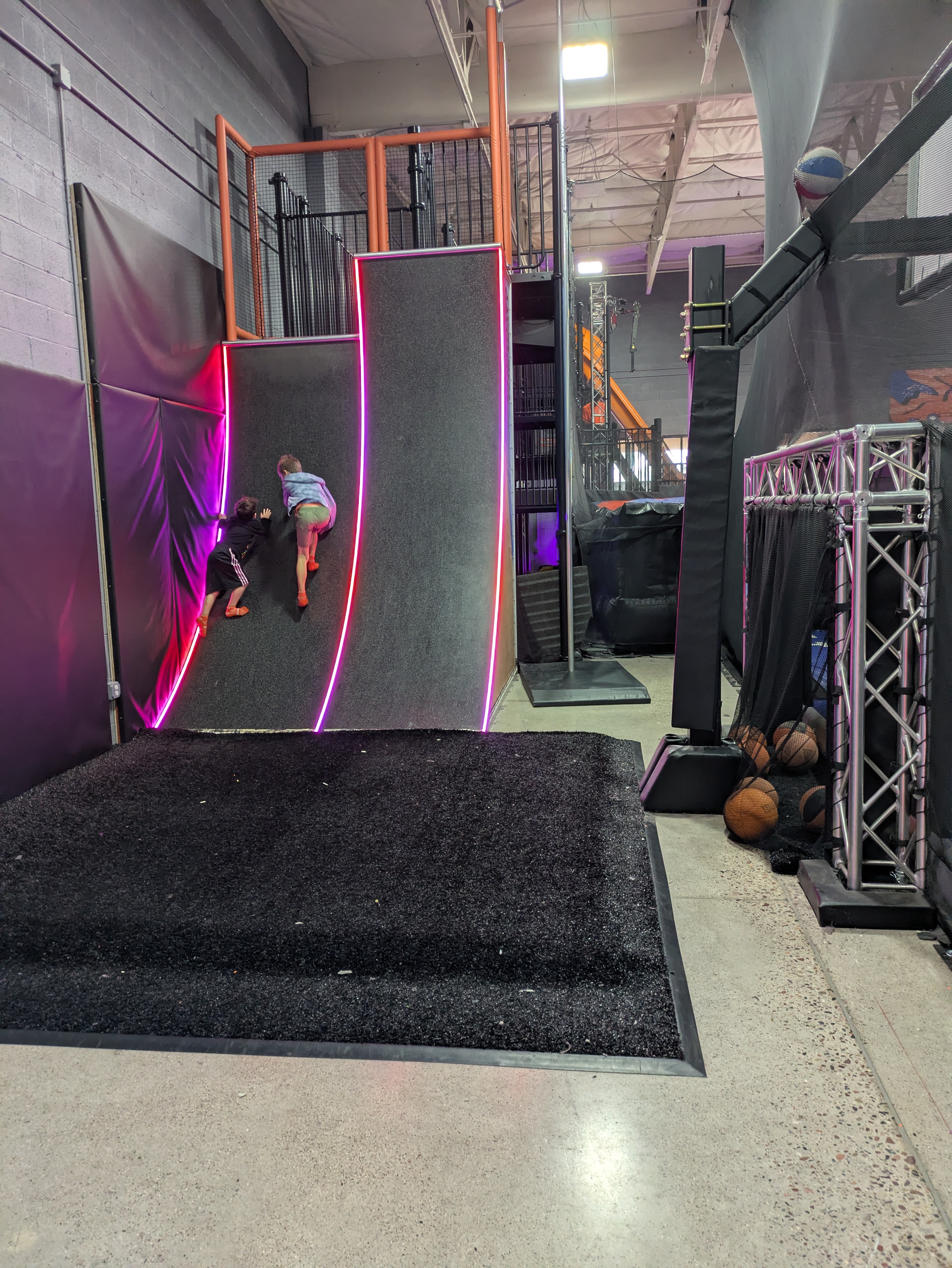 Неуличные активности тоже присутствовали. Батутный центр со всякими лазилками для детей — это как караоке для взрослых: где-то носятся, прибегают красные и потные, чтобы попить водички и бежать дальше срывать голос. Дети стали проводить в батутных центрах дни рождения — когда заказываешь праздник под ключ, дают купоны на бесплатное посещение, которыми мы и пользуемся на каникулах. Только три пары специальных носков пришлось купить — $20.