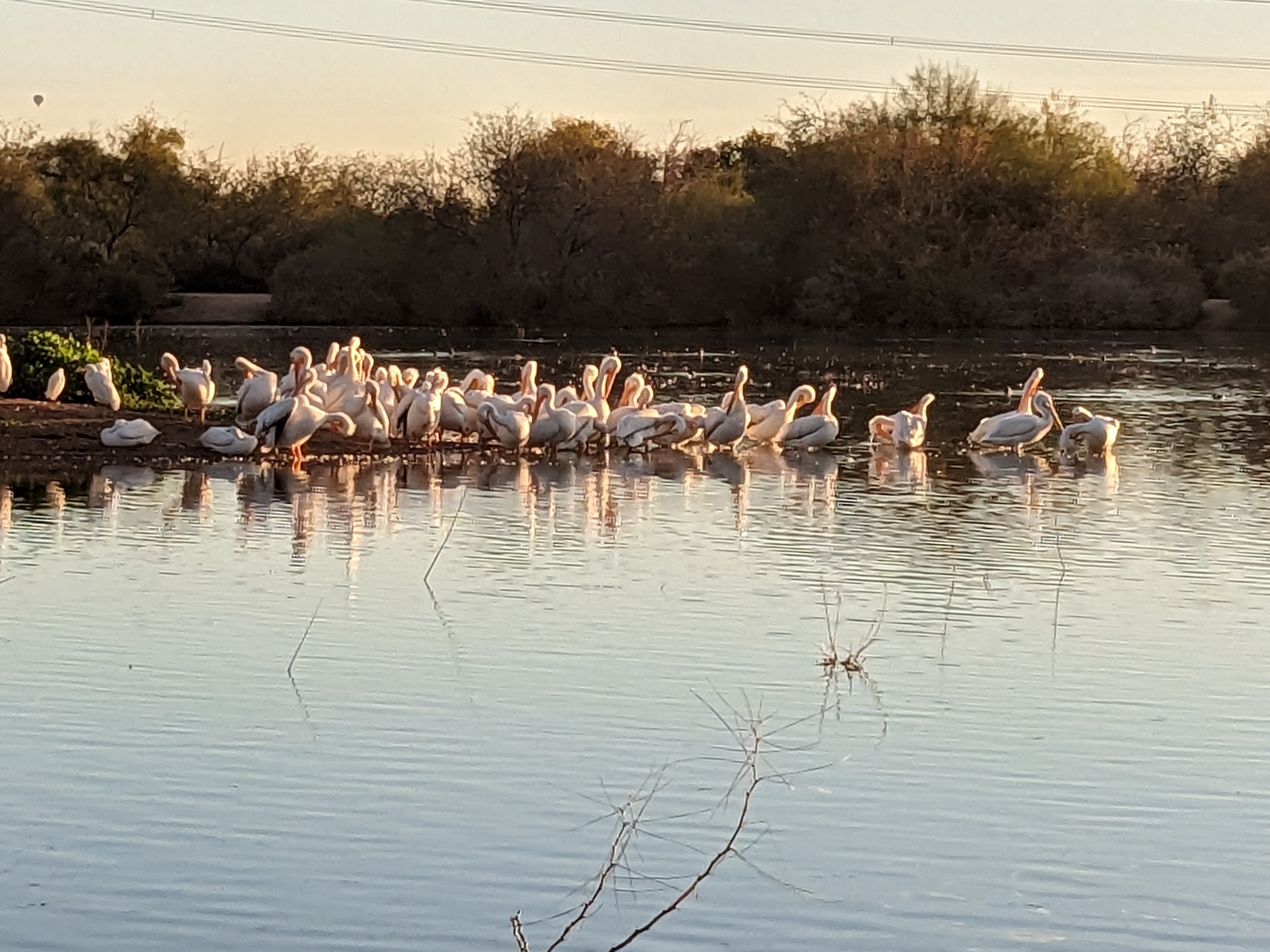 В нашей пустыне Соноре — как и в любой другой — мало естественных источников воды. Поэтому в некоторых местах на зиму власти запускают воду в специальные искусственные пруды, чтобы там могли зимовать крупные перелетные птицы. Вход в заповедник бесплатный. Пару раз за сезон мы стараемся выбраться и понаблюдать за цаплями, пеликанами, ибисами и другими, более прозаичными, созданиями типа крякв. Однажды нам повезло увидеть колпицу — удивительную розовую птицу с клювом-ложкой. Это одно из самых ярких воспоминаний в Аризоне: каждый раз, когда мы едем на пруды, я втайне надеюсь снова ее повстречать, но пока безуспешно. Еще вокруг прудов растет множество мескитовых деревьев, среди которых снуют длинноухие кролики-джекрэббиты, а мы развлекаемся, считая хвосты.