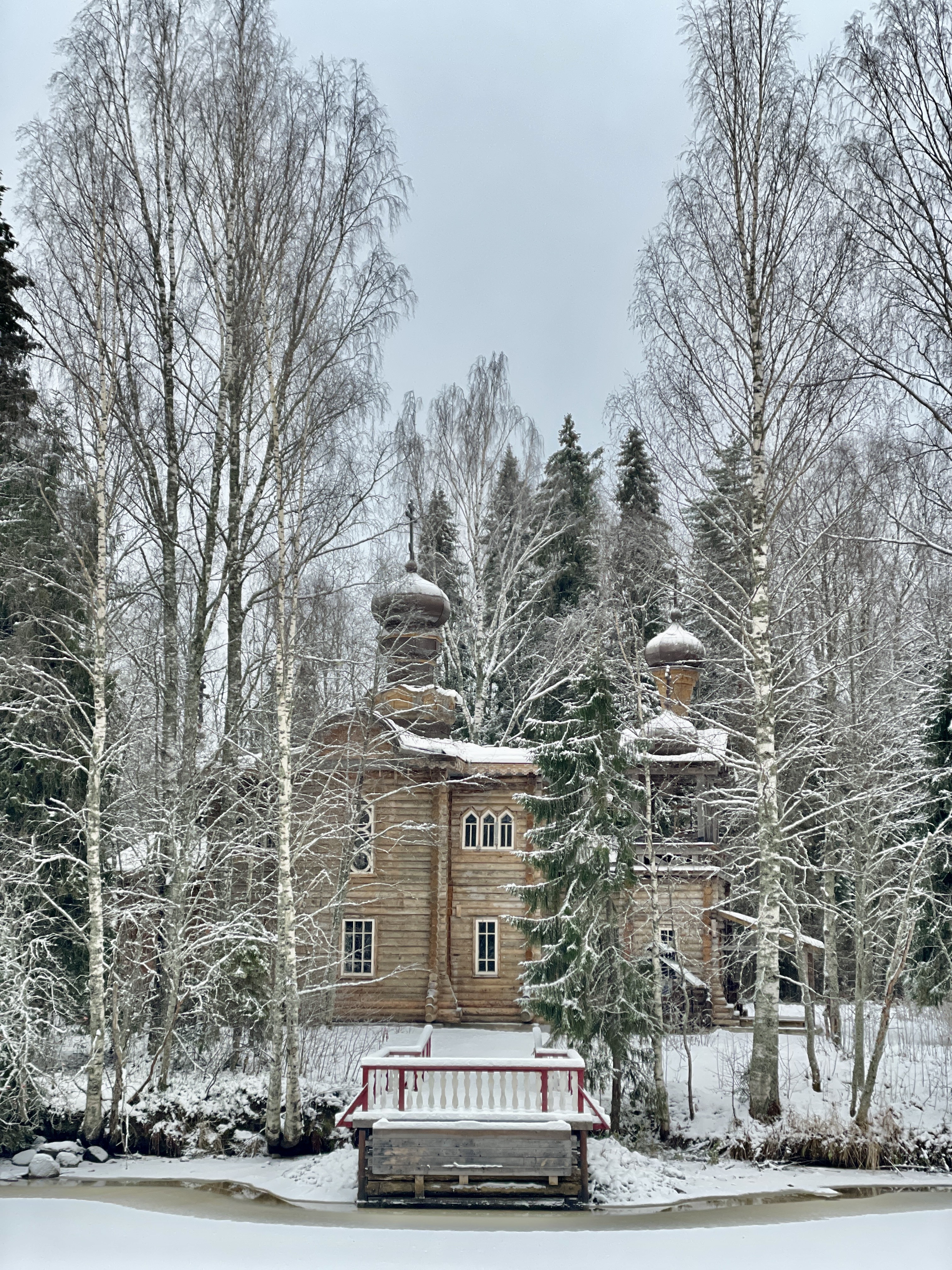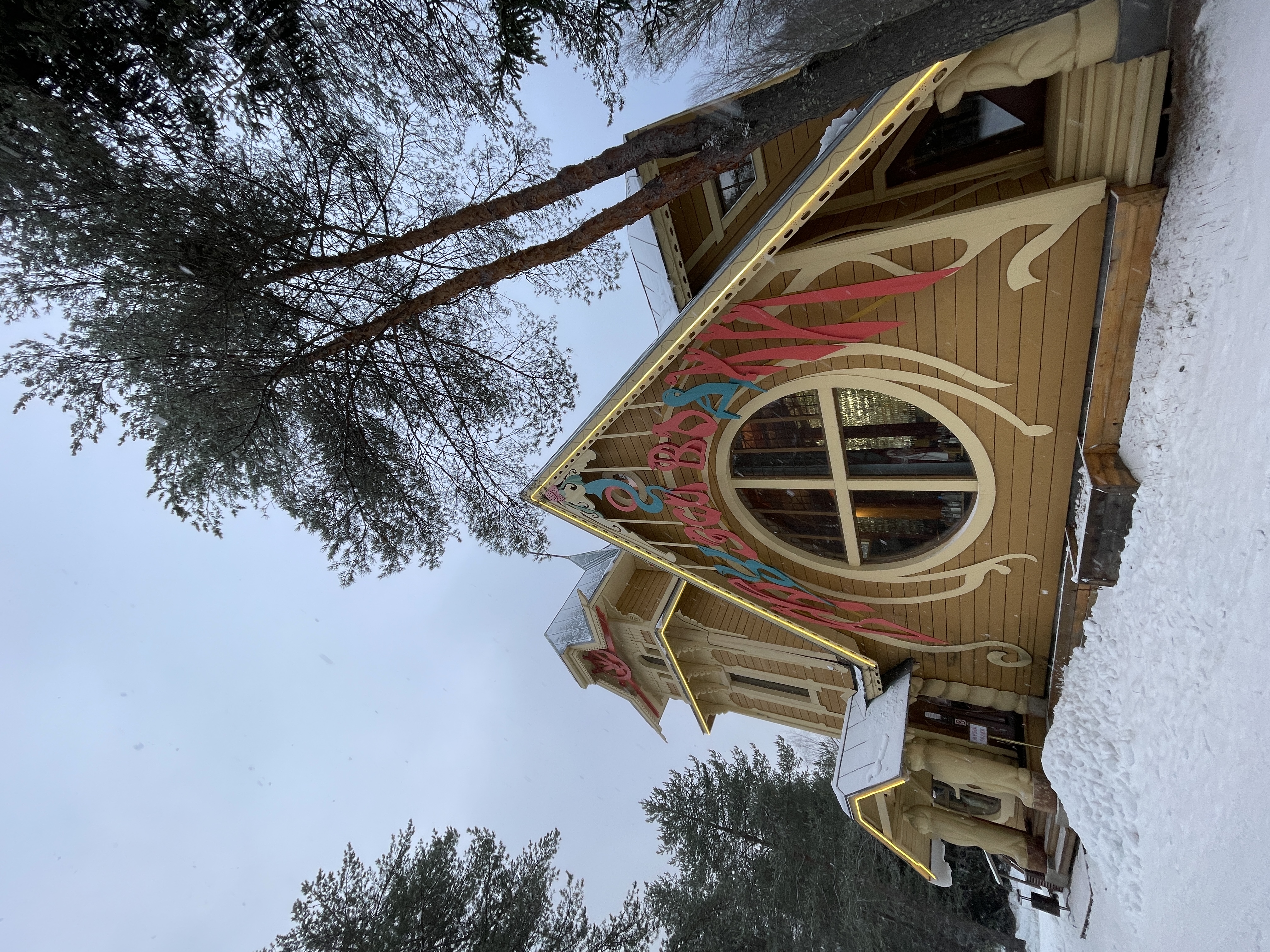 Я заказала такси. Время в пути по заснеженным невероятно красивым лесам заняло порядка 25 минут.