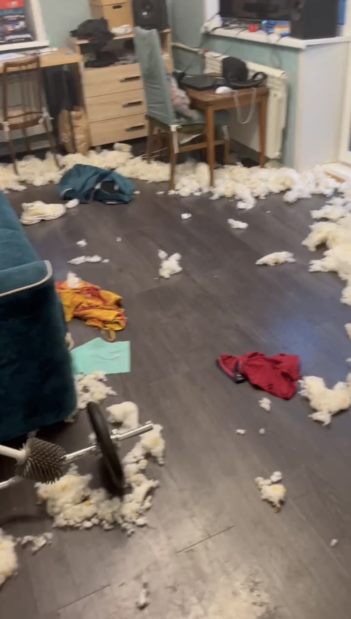 В этой квартире у Джу появилась дорогая и суперпрочная клетка (это было моей главной ошибкой), которую она научилась открывать языком и лапами. Если бы камеры записывали происходящее, я бы обязательно прикрепила вам этот кусочек записи. Ровно на второй раз оставшись в клетке, Джули придумала, как открыть дверцу. Входная группа квартиры была обшита панелями, однажды я ушла на работу, увидела по камерам дома, что Джу не попадает в поле зрения, по логике она могла находиться только у входной двери. Меня не было чуть меньше трех часов, когда я открыла дверь, на меня повалились панели, которыми были обшиты стены в прихожей — дизайнер внутри шоколадной морды снова громко заявил о себе. Я нашла мастера на яндекс услугах и ремонт со всеми материалами обошелся мне примерно в 6500 рублей.