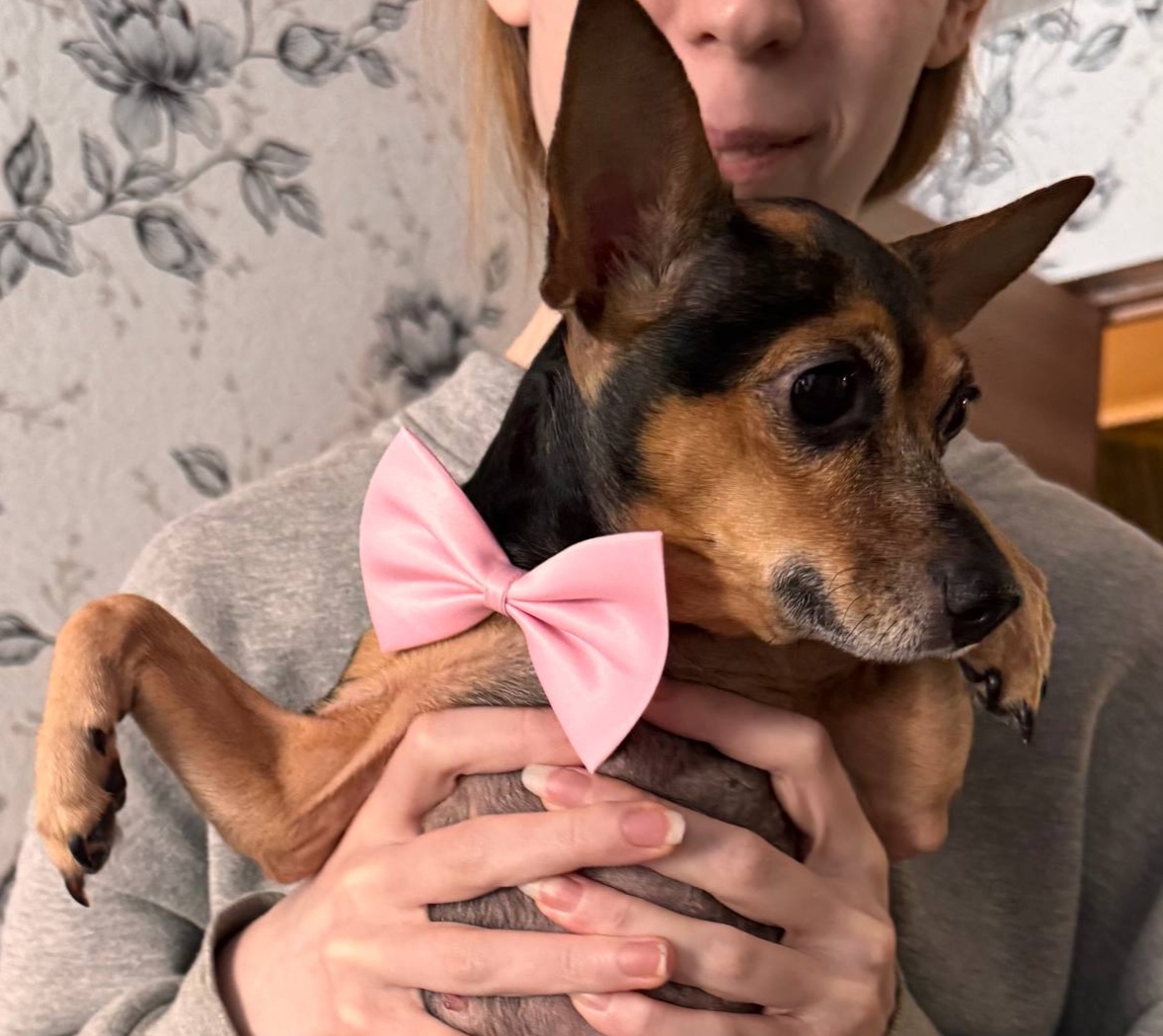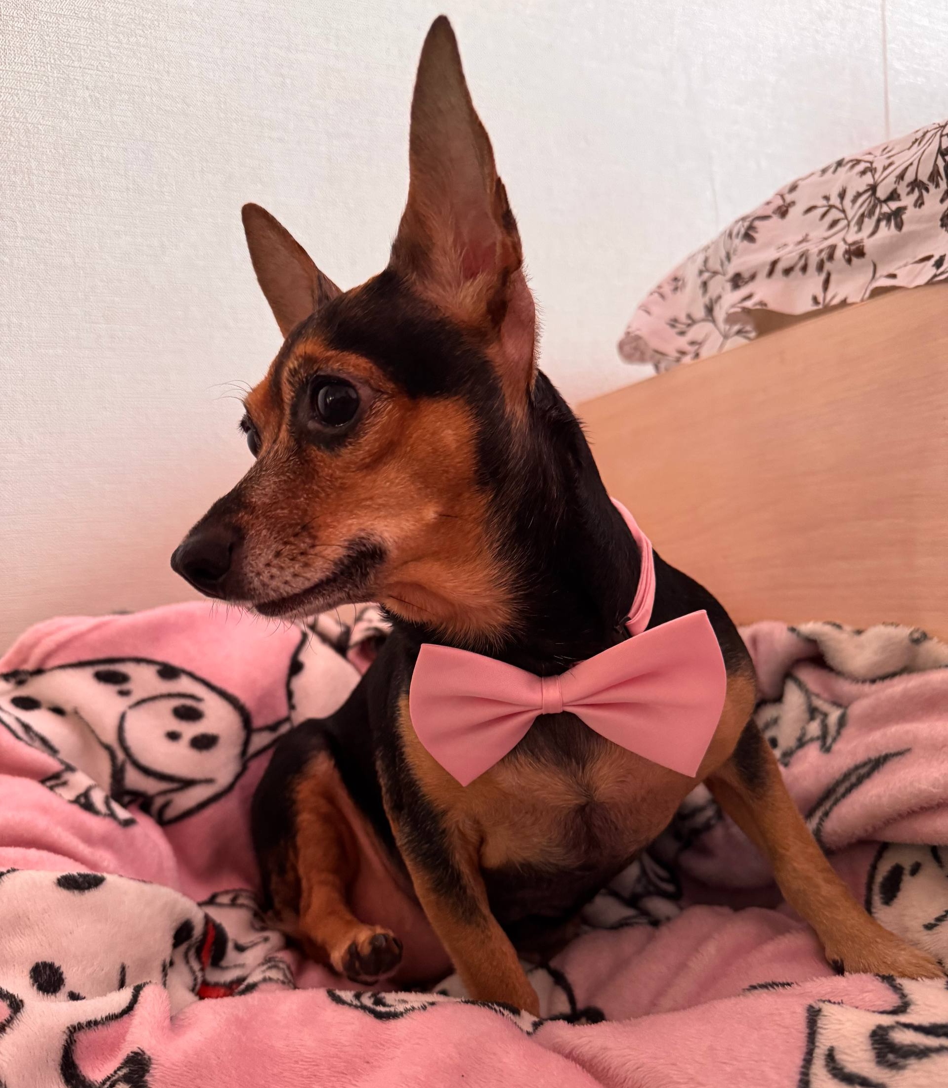 Наша собачка Джулия готовится к празднику, сегодня в качестве наряда у нас розовый бантик 🎀