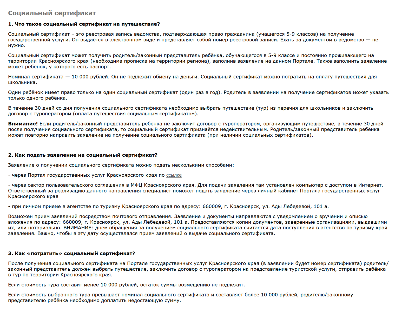 Как получить. Заявление на сертификат можно скачать или заполнить на региональных госресурсах. Например, в Красноярском крае — на сайте краевого агентства по туризму. Там же будет указано, куда и как подать заявление.