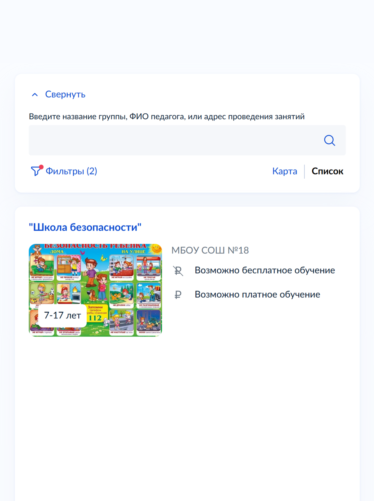 Позволяет оплачивать государственные и частные кружки любой направленности для детей в возрасте 5—17 лет.