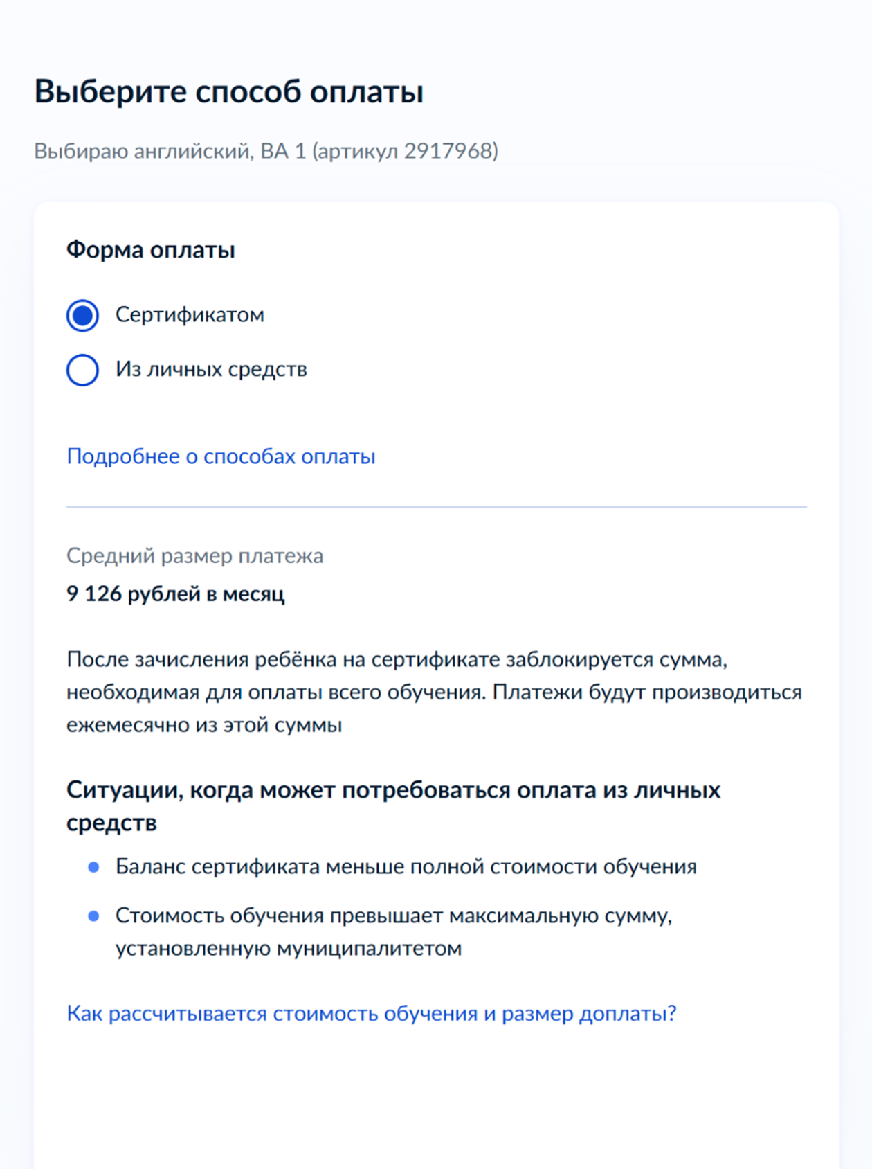 - Если денег или баллов на сертификате не хватит, придется доплатить из своего кармана. А если к концу срока действия сертификата на нем еще останутся средства, они вернутся в бюджет.