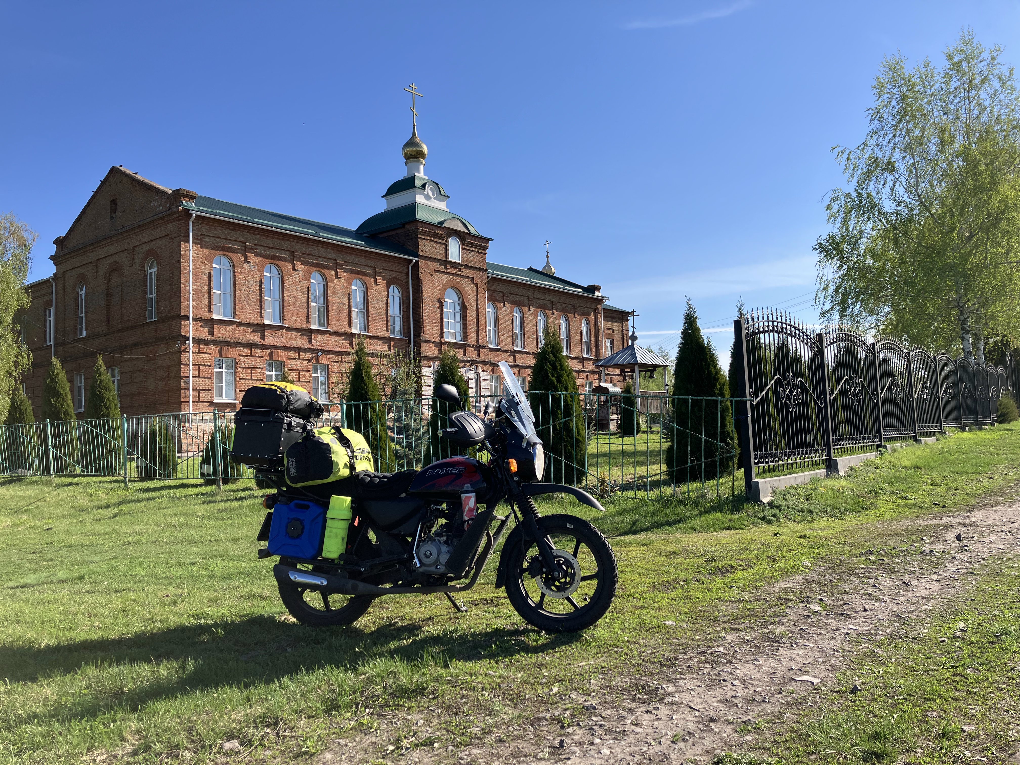 В первый день путешествия я проехал чуть дальше Тамбова и остановился на ночлег в Носовском мужском монастыре, за что огромное спасибо отцу Прохору, который выделил отдельную комнату и накормил ужином. Кстати, Прохор тоже мотоциклист — ездит на мотоцикле Ямаха.