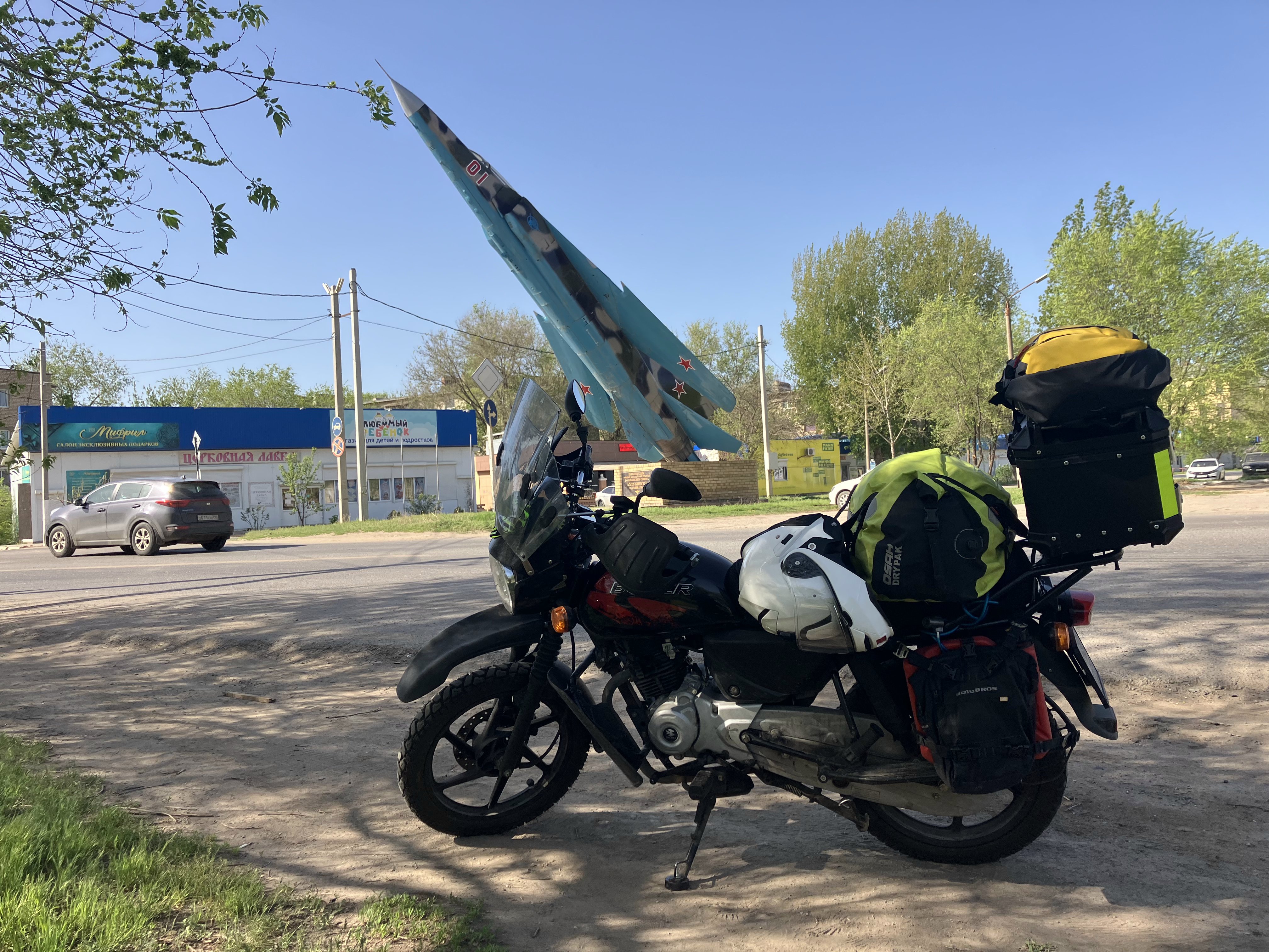 На следующий день путешествия я проехал почти 600 км до города Ахтубинск в Астраханской области. Город известен тем, что тут находится лётно-испытательный центр Министерства обороны имени Чкалова. Переночевал в гостинице «Взлет» и готов продолжить свой путь к границе Казахстана.