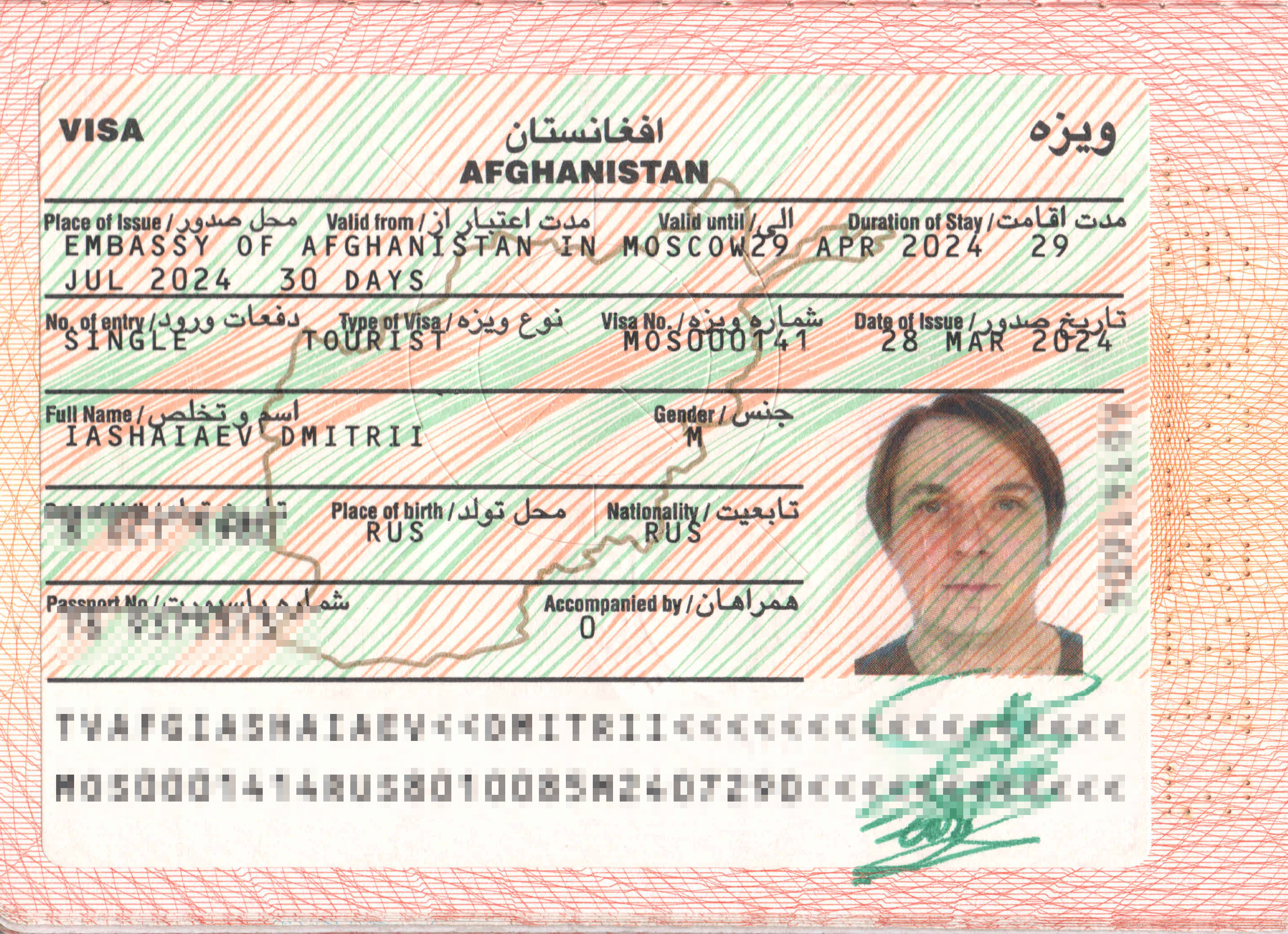 Получить визу в посольстве Афганистана в Москве достаточно просто: нужен загранпаспорт и фотографии 3x4. На месте заполняем простенькую анкету, оплачиваем консульский сбор и через 3–4 дня виза уже вклеена в ваш паспорт.
