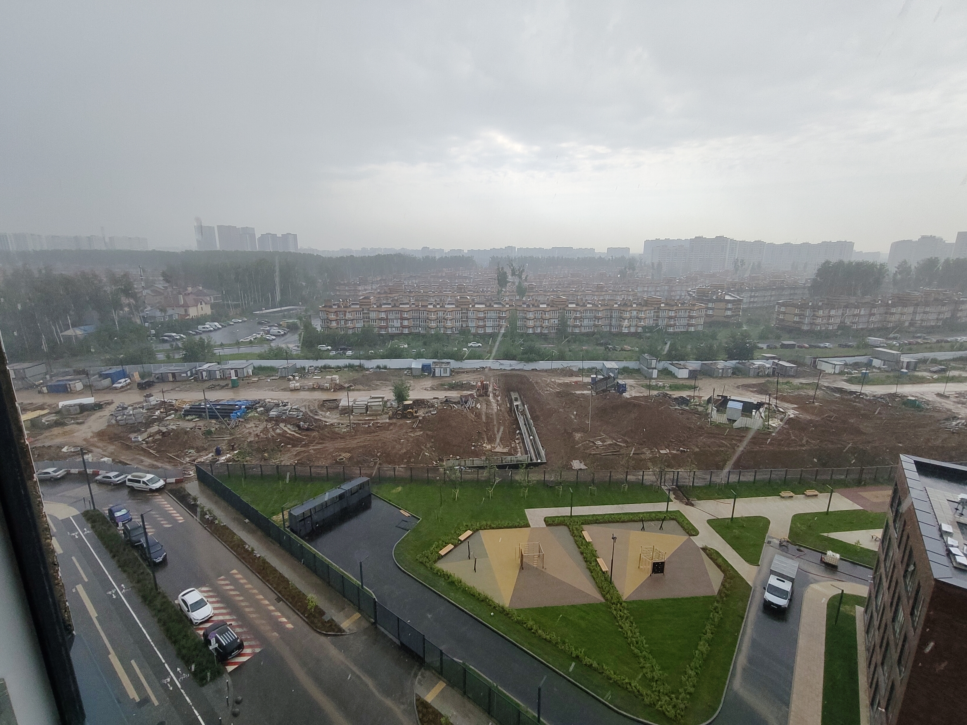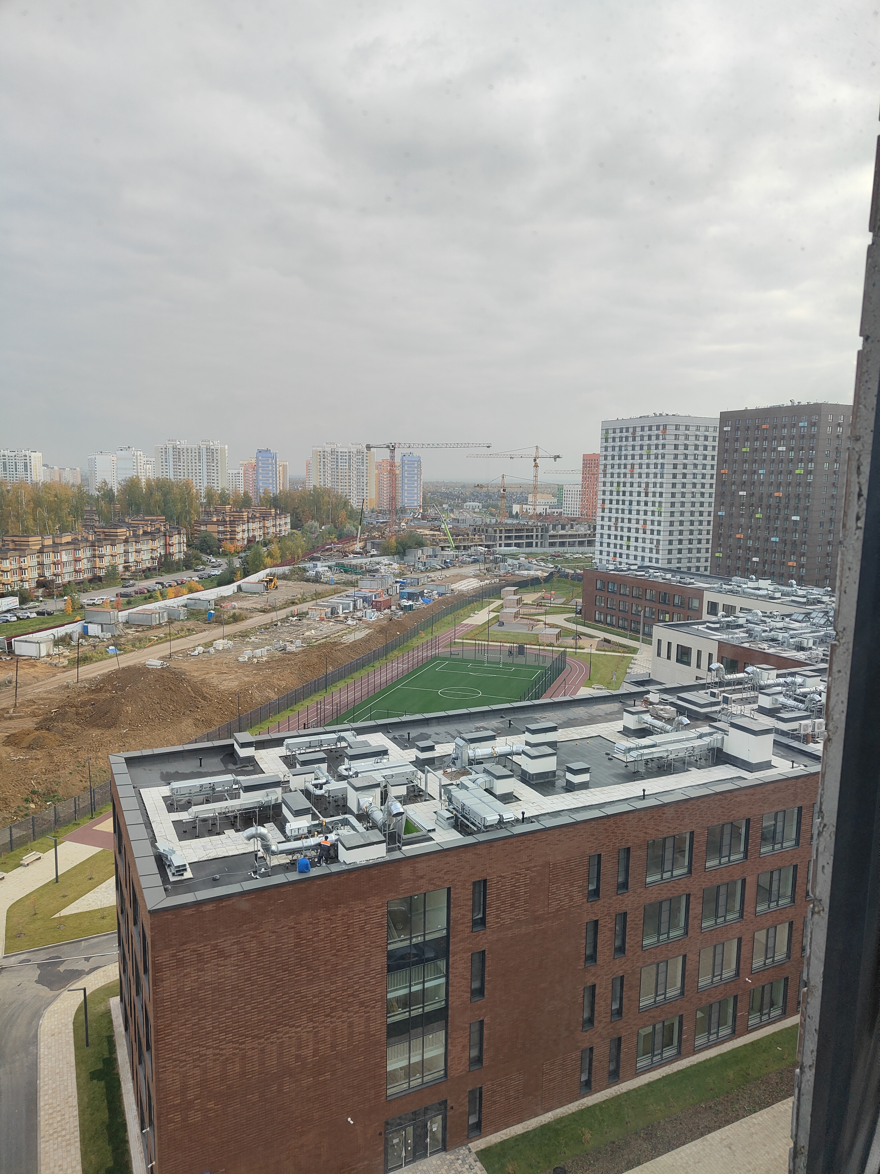 В этом году переехал в свою маленькую евротрешечку (47 м) на краю человейника в Новой Москве. У меня высокий этаж и окна выходят на школу и на на малоэтажный ЖК, постороенный в нулевые. Между нами грозятся сделать проезжую часть, а поодаль строят небоскреб, но пока это все на перспективу 😁