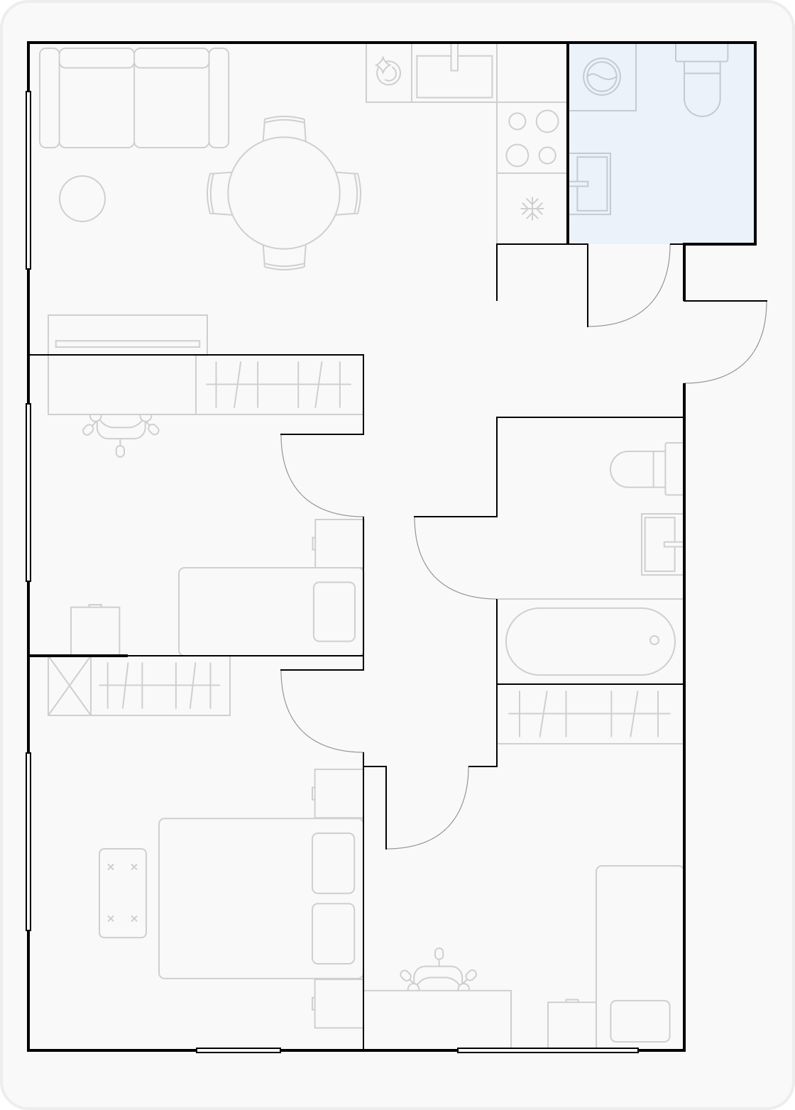 Помимо единого большого пространства евроформат позволяет при необходимости формировать отдельные зоны, чтобы комфортно распределять активности внутри квартиры, например выделить рабочую зону для человека, который работает из дома. То есть это про гибкие сценарии жизни, комфорт и возможность адаптировать пространство.