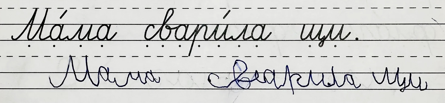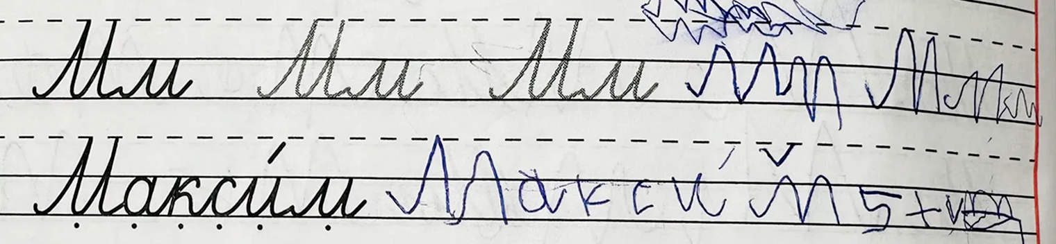 Отдельно я волновалась за письмо. Мы начали тренироваться до школы, но работа шла медленно: дочь долго училась держать ручку, управлять нажимом, отрабатывала базовые элементы. В школе Мира почти не работала в прописях, дома же задания на письмо вызывали сильное сопротивление.
