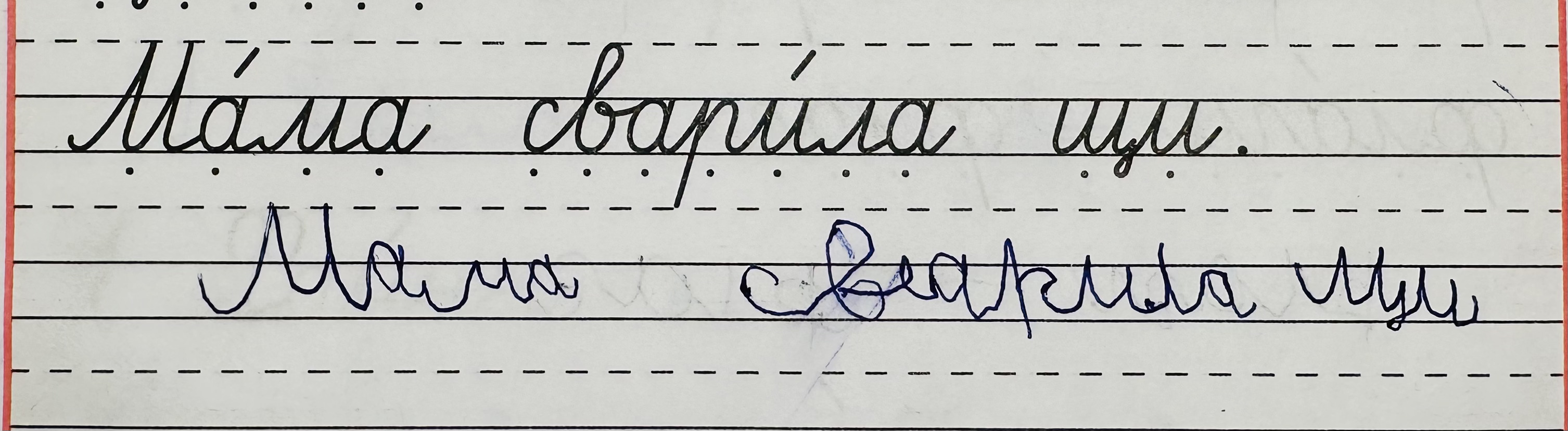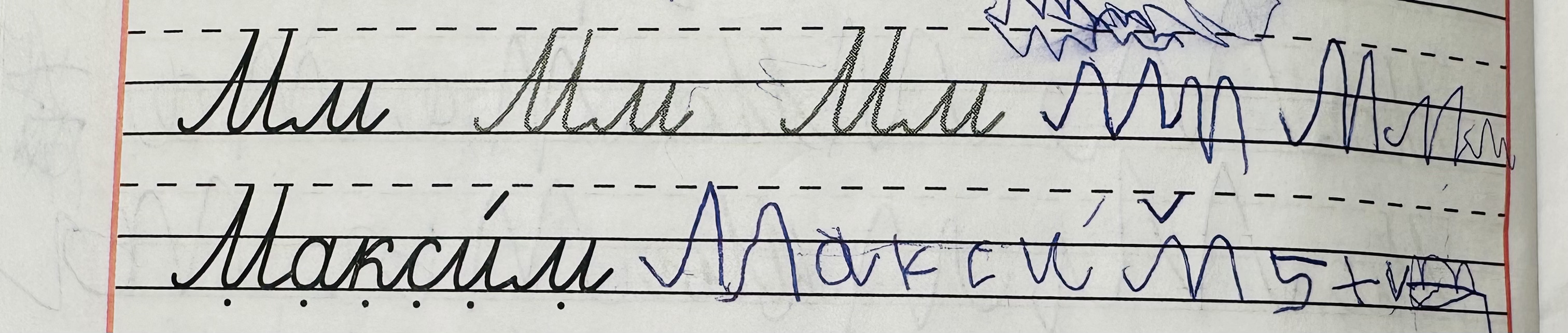Отдельно я очень волновалась за письмо. Мы начали тренироваться до школы, но работа шла медленно — долго учились держать ручку, управлять нажимом, отрабатывали базовые элементы. В школе Мира практически не работала в прописях, дома же задания на письмо вызывали сильное сопротивление. Ситуация изменилась, когда я стала рисовать схему каждого элемента со стрелками и показывать Мире прогрессию в написании. Вместе с дефектологом, которая работала с Мирой онлайн, мы разработали рабочие листы, по которым Мира тренировалась писать. На зимних каникулах мы за две недели закончили с дочерью школьные прописи, которые она не могла освоить полгода.