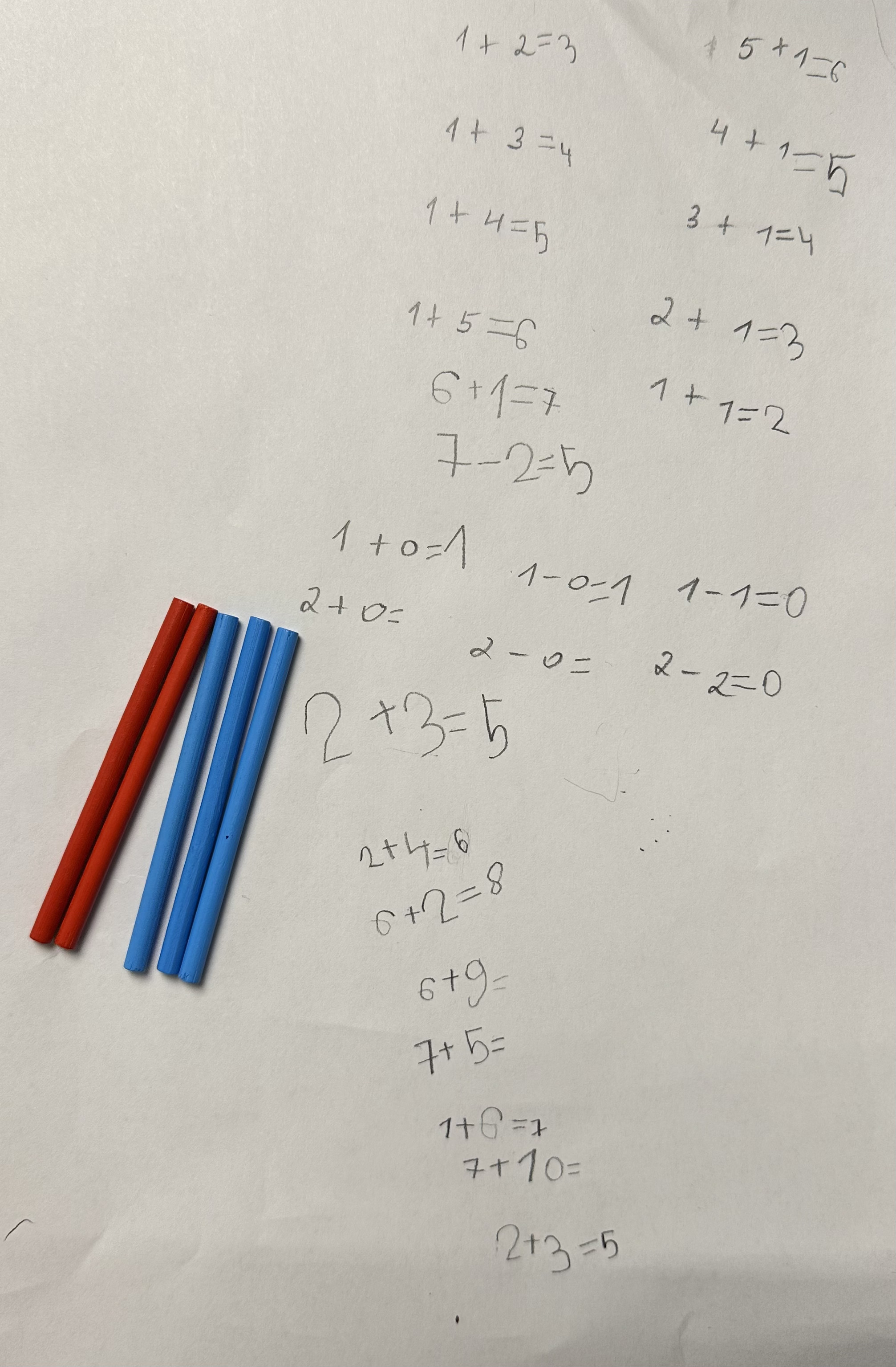 А вот что я упустила, так это математика. До школы Мира знала цифры, прямой и обратный счет до 10, могла посчитать предметы, но решать даже самые простые примеры у нее не получалось. Дочь стала быстро отставать по программе, а у меня наступало отчаяние, когда в очередной раз на вопрос «сколько будет 1+0» в ответ звучало «0». Здесь было важно не останавливаться на «нет способностей» и работать с причинами: отсутствием понимания чисел, цепочкой «предмет — количество — символ», развитием исполнительных функций мозга. Мы сделали два шага назад и начали снова лепить цифры из пластилина, работать с палочками, использовали визуальные подсказки, каждый день отрабатывали счет от 0 до 3. Параллельно с Мирой продолжал работать дефектолог. Благодаря совместным усилиям у дочери появились первые успехи, а я отключила режим паники и сосредоточилась на долгосрочной работе.