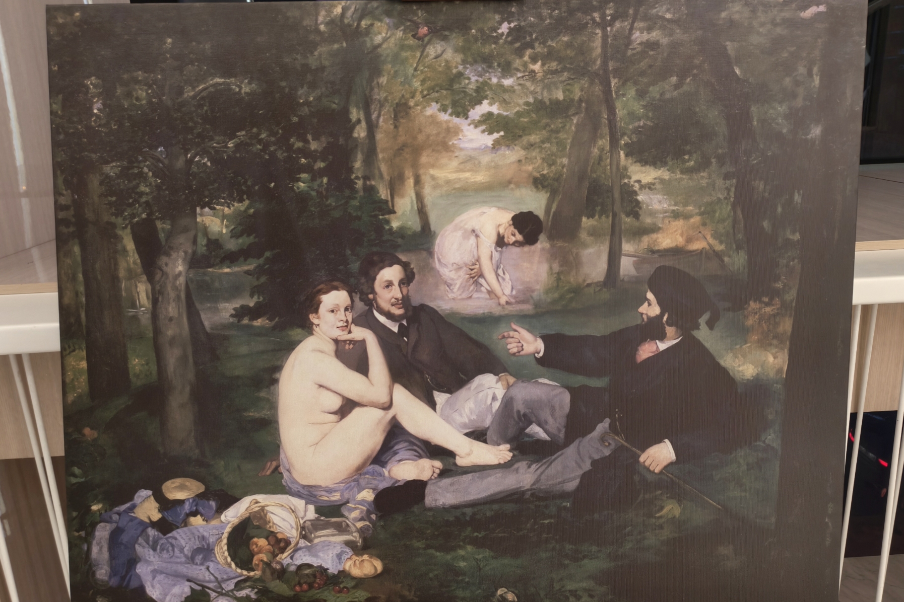 А впечатления начинаются еще до начала спектакля — в фойе театра зрителей встречает картинная галерея. Интересный ход, чтобы познакомить с творчеством Эдуарда Мане, например, до этого я лишь мельком слышал об этом художнике. Бонусами шли аккордеонист и фотограф.