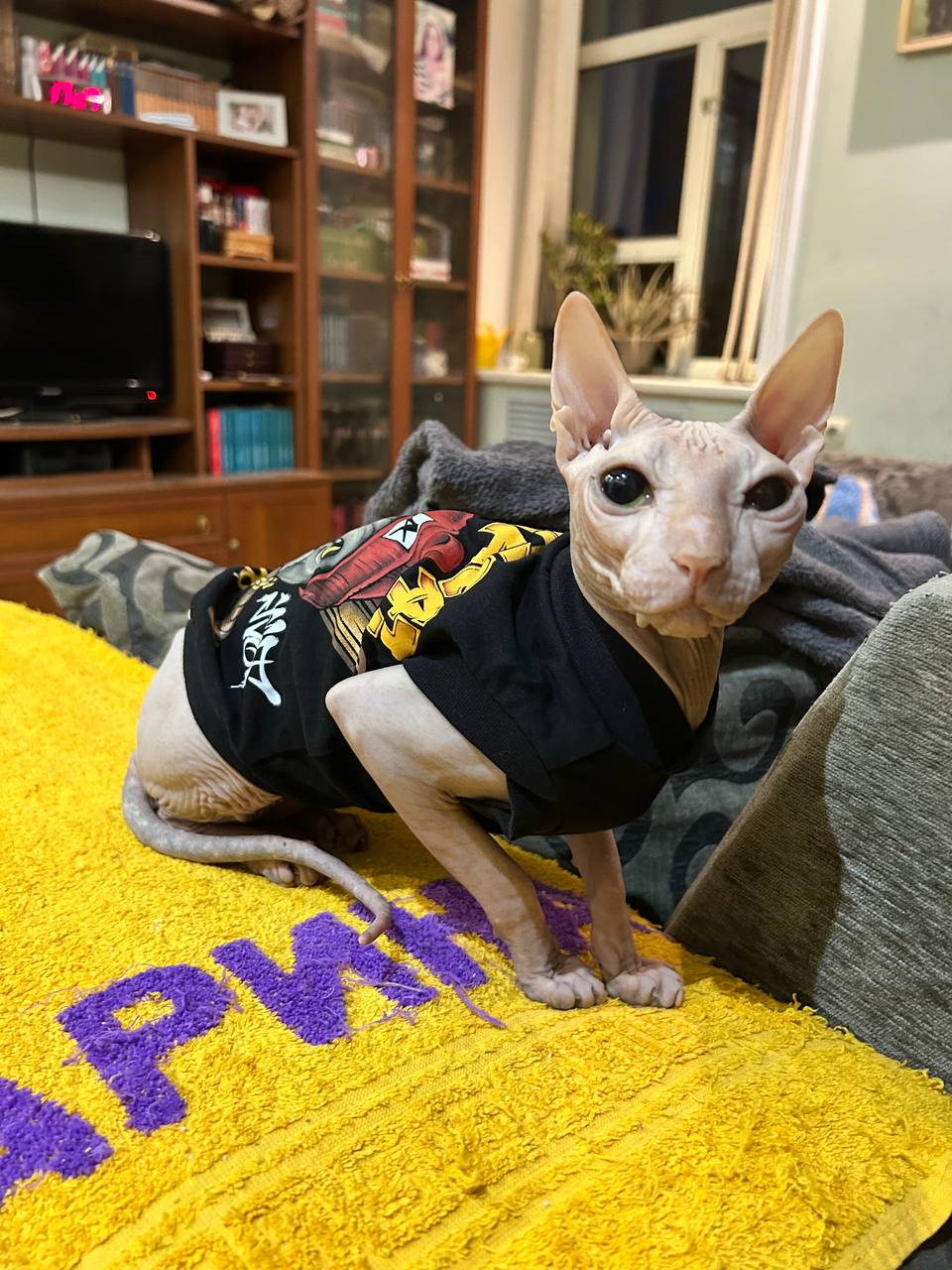 Фото питомца: сфинкс Прохуарий приоделся к Новому году