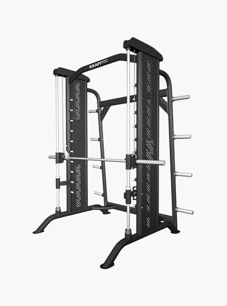 Тренажер, или машина, Смита — это стойка с фиксированным грифом, который движется только по определенной траектории. В нем можно выполнять привычные упражнения, которые обычно делают со штангой: приседания, румынскую тягу, жим от груди и другие. В фитнес-клубах чаще всего встречаются два вида тренажера: наклонный и вертикальный.
