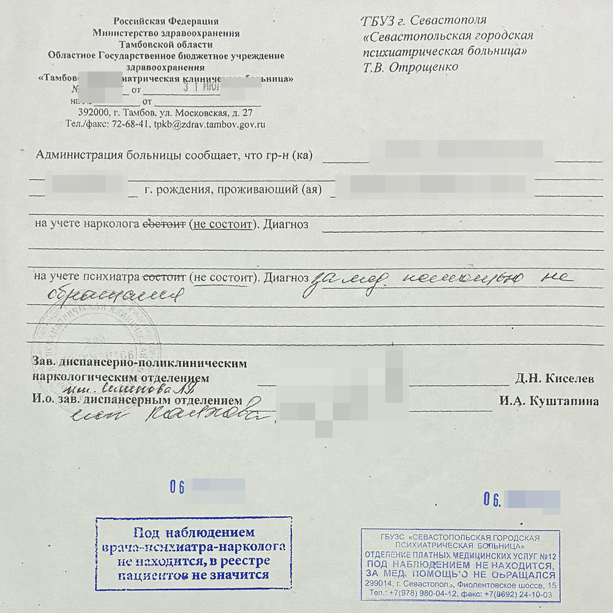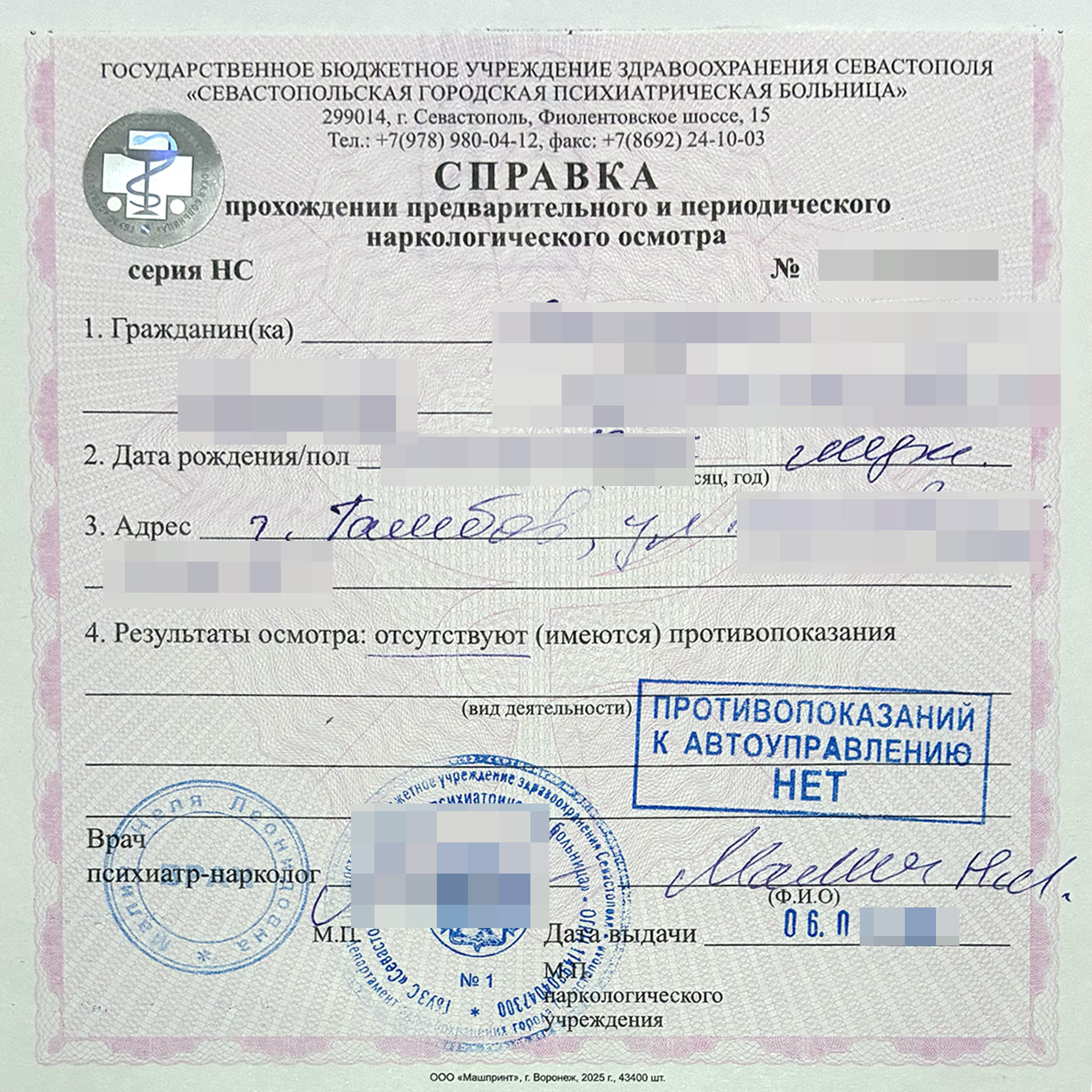 Как выглядит справка от нарколога