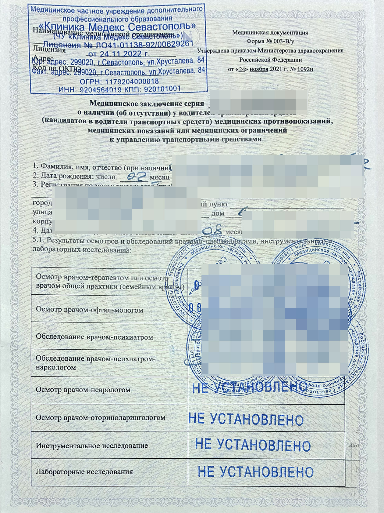 Нарколога можно пройти только в государственной или муниципальной клинике с лицензией на оказание услуг по психиатрии-наркологии и лабораторной диагностике . Заключение врача из частной клиники не подойдет тем, кто хочет получить справку 003-В/у. Но в составе медкомиссии может быть психиатр-нарколог: частные медцентры приглашают врачей из государственных диспансеров для работы на своей территории. Тогда услуги такого врача оплачивают отдельно от справки 003-В/у. Это легальный формат, его называют комиссией в режиме одного окна.