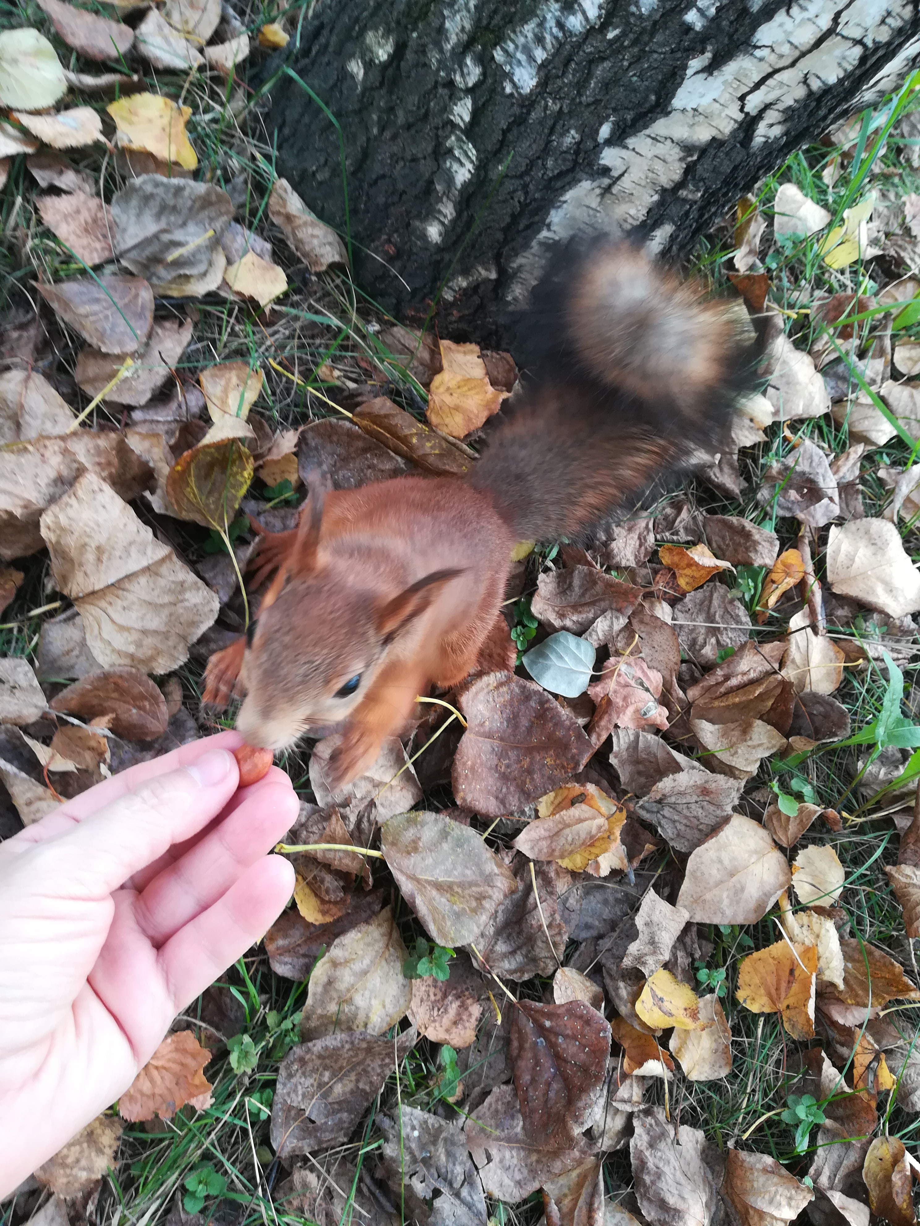 Фото питомца: белка ест орешек с руки