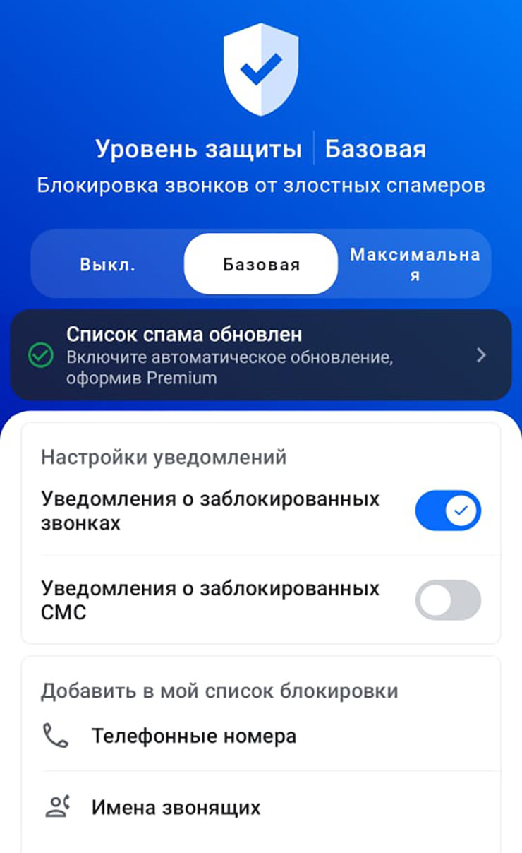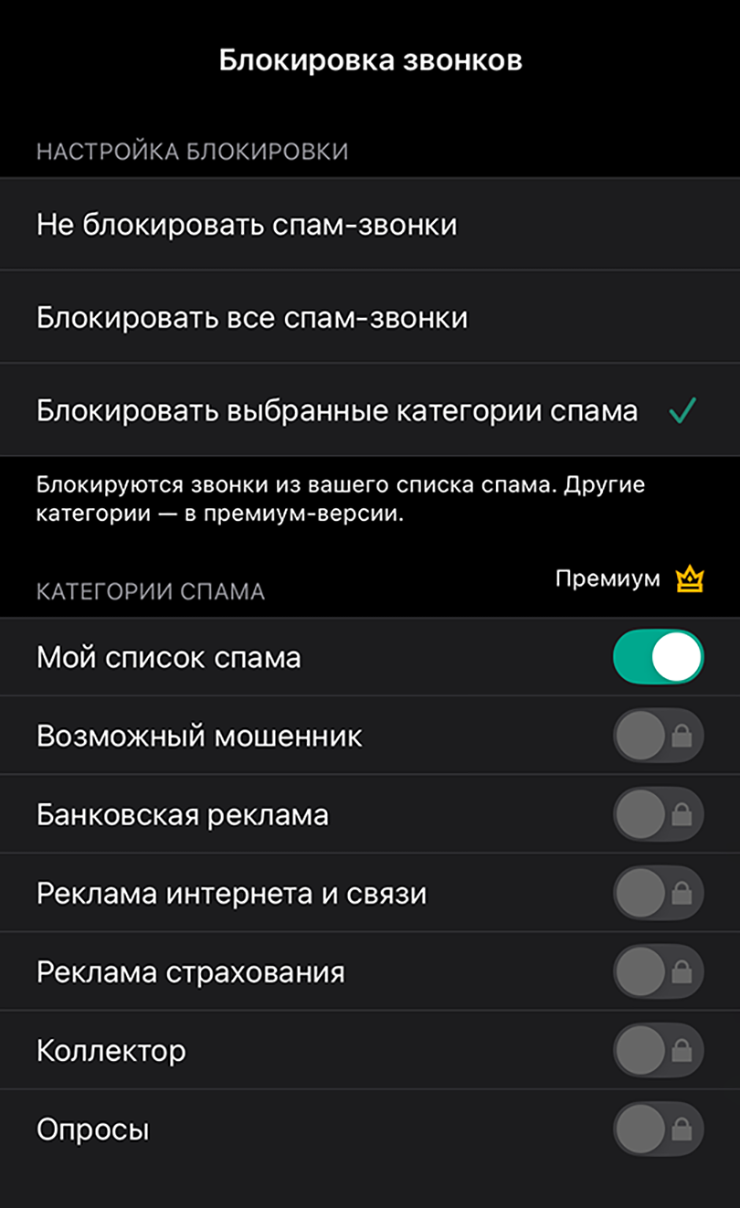 В бесплатной версии доступна блокировка всех подозрительных звонков или собственных категорий. Для защиты от бомберов этого достаточно.