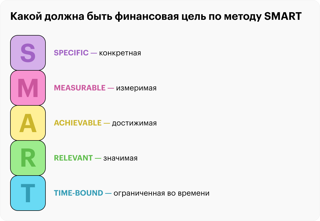 📌 Подробнее о том, как правильно ставить финансовые цели, чтобы достигать их, — в первом уроке.