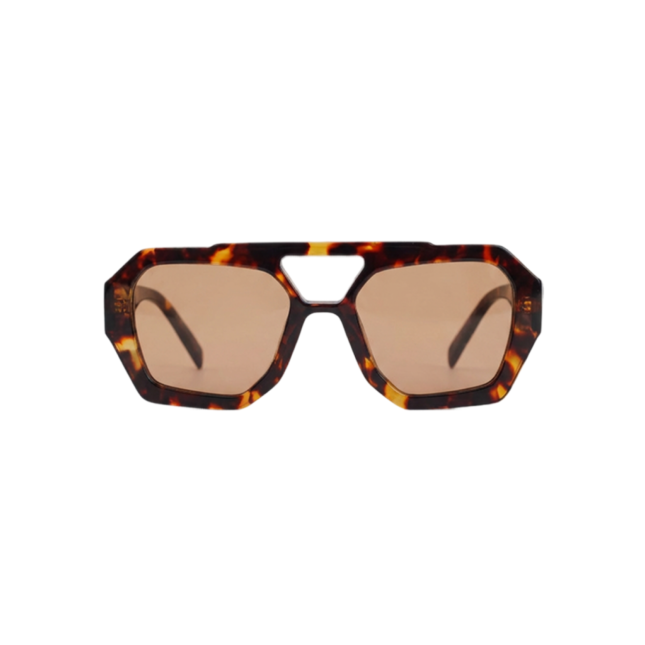 Авиаторы с широкой пластиковой оправой бьют все рекорды по популярности в 2026 году, и такие модели уже можно найти у российских марок. За счет шестиугольной оправы и полупрозрачного леопардового принта эти очки Rosi выглядят броско, но не кричаще