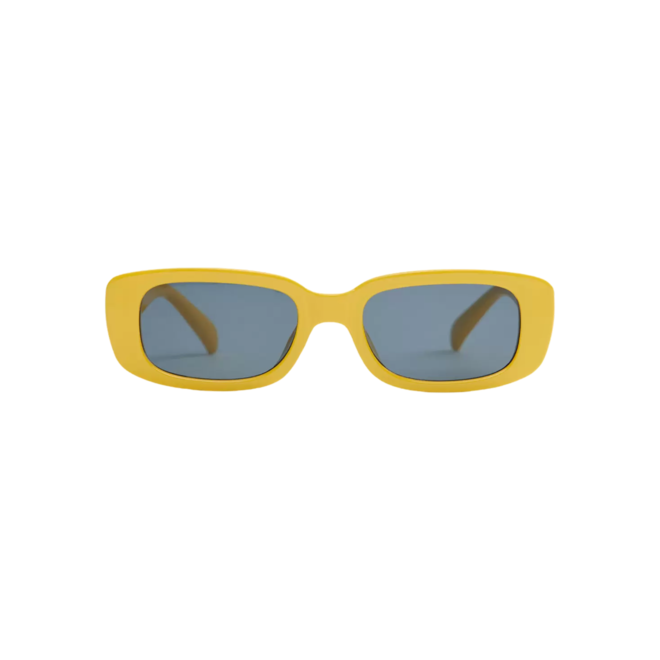 Модные очки по цене злакового батончика — невероятно, но факт. Пара выполнена в трендовом желтом цвете, насыщенность которого визуально усиливают темные линзы. Модель в стиле футуризма 1960-х может стать яркой деталью в любом образе, будь то расслабленный аутфит для отпуска или строгий офисный лук