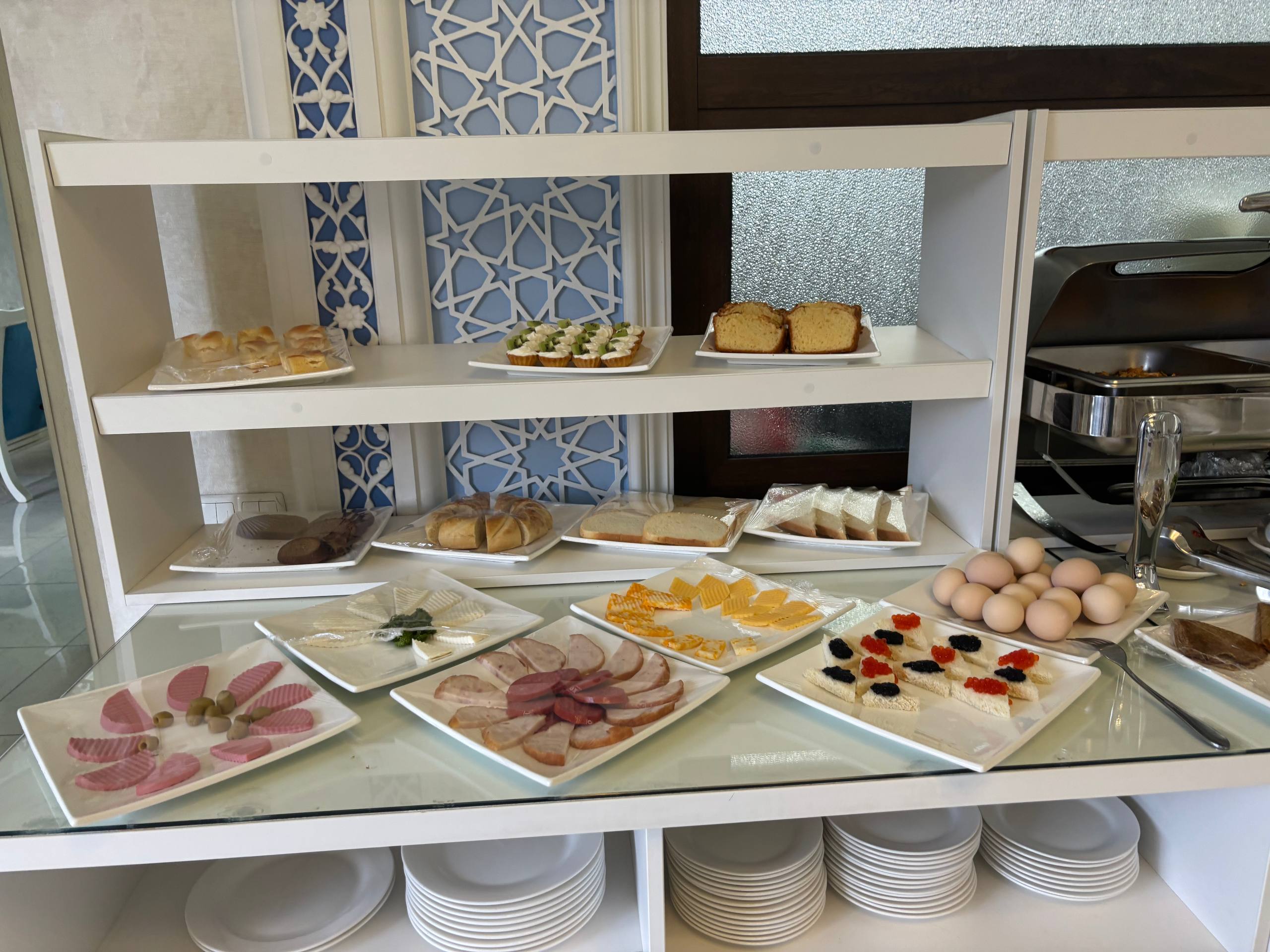 В отеле у меня был включен завтрак — обычный шведский стол без особых изысков, но все вкусное и свежее, и опять же тематический зал для завтрака.