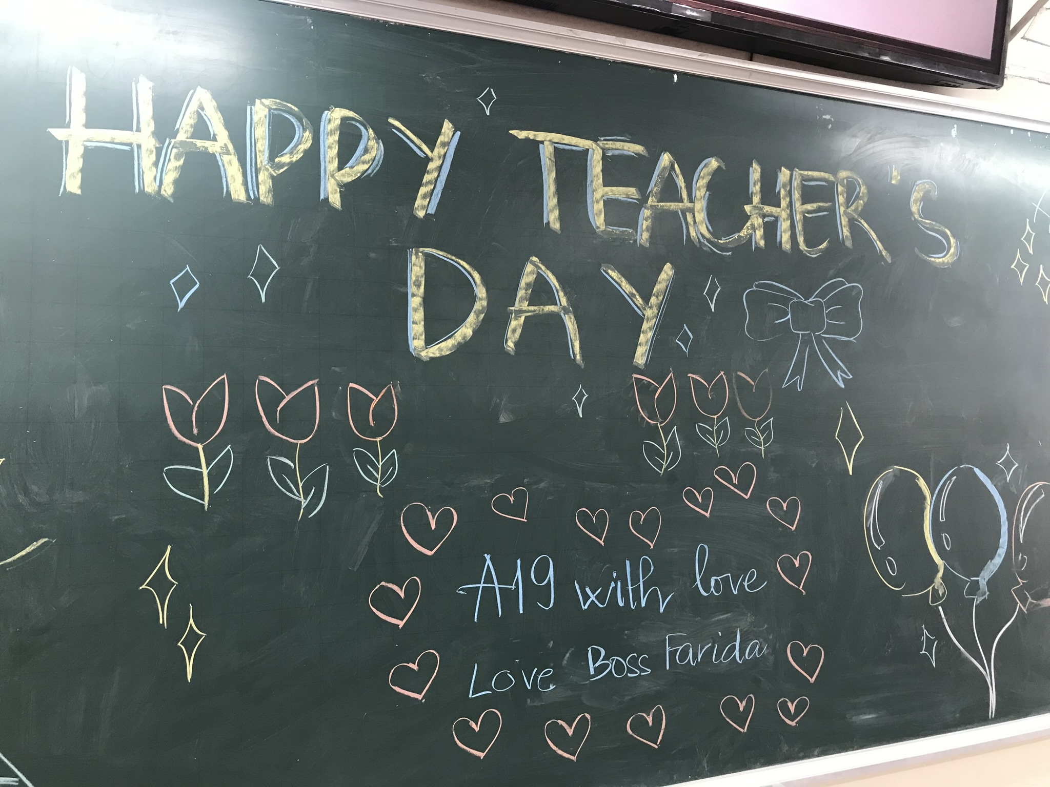 Особое впечатление оставило оформление досок: ученики рисовали красивые узоры и пожелания, писали имя преподавателя и просили не входить, пока не закончат.
