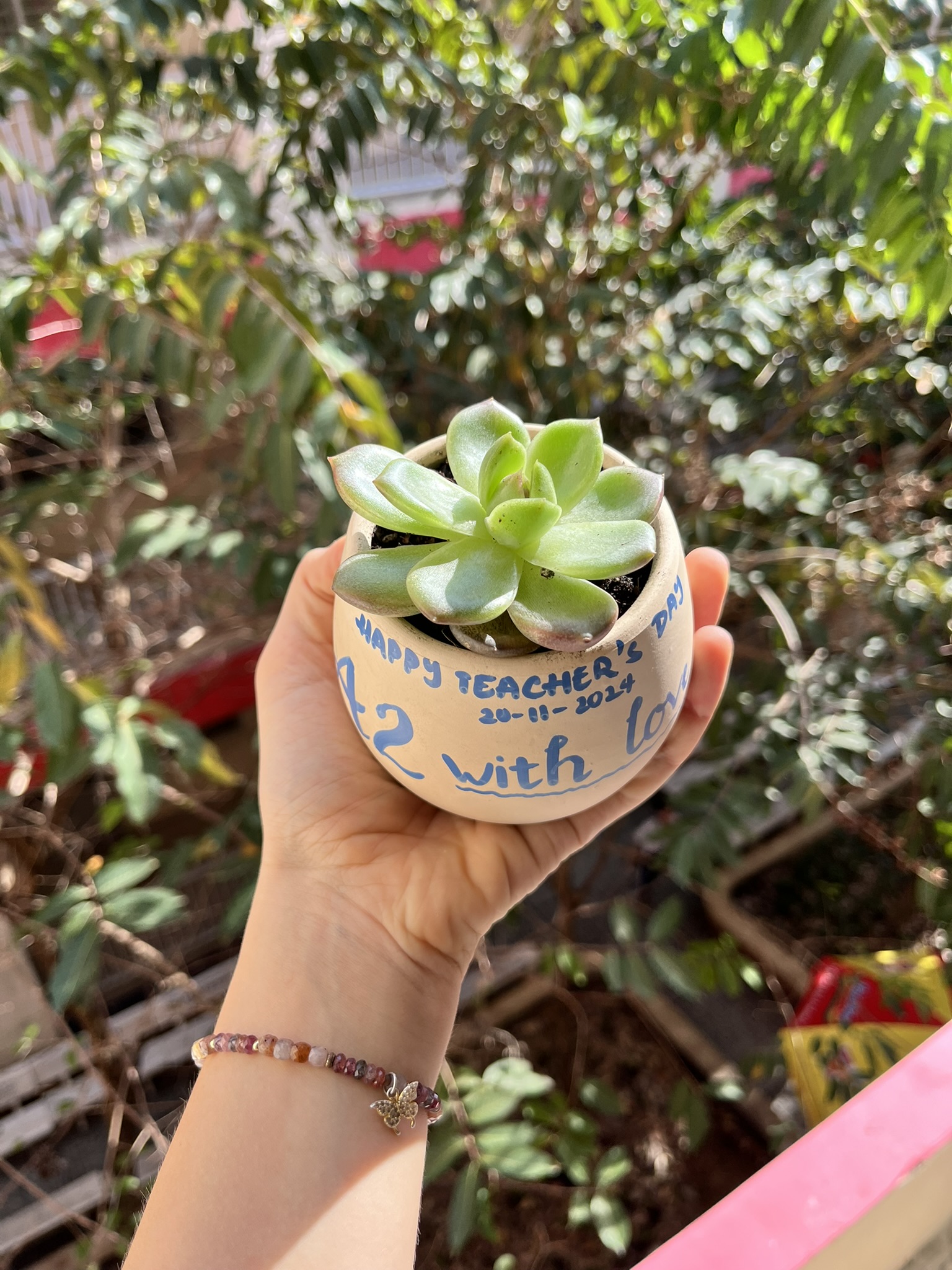 Кроме того, мне дарили вьетнамские шапочки, горшочки с суккулентами с подписями на русском языке — всё специально для меня.