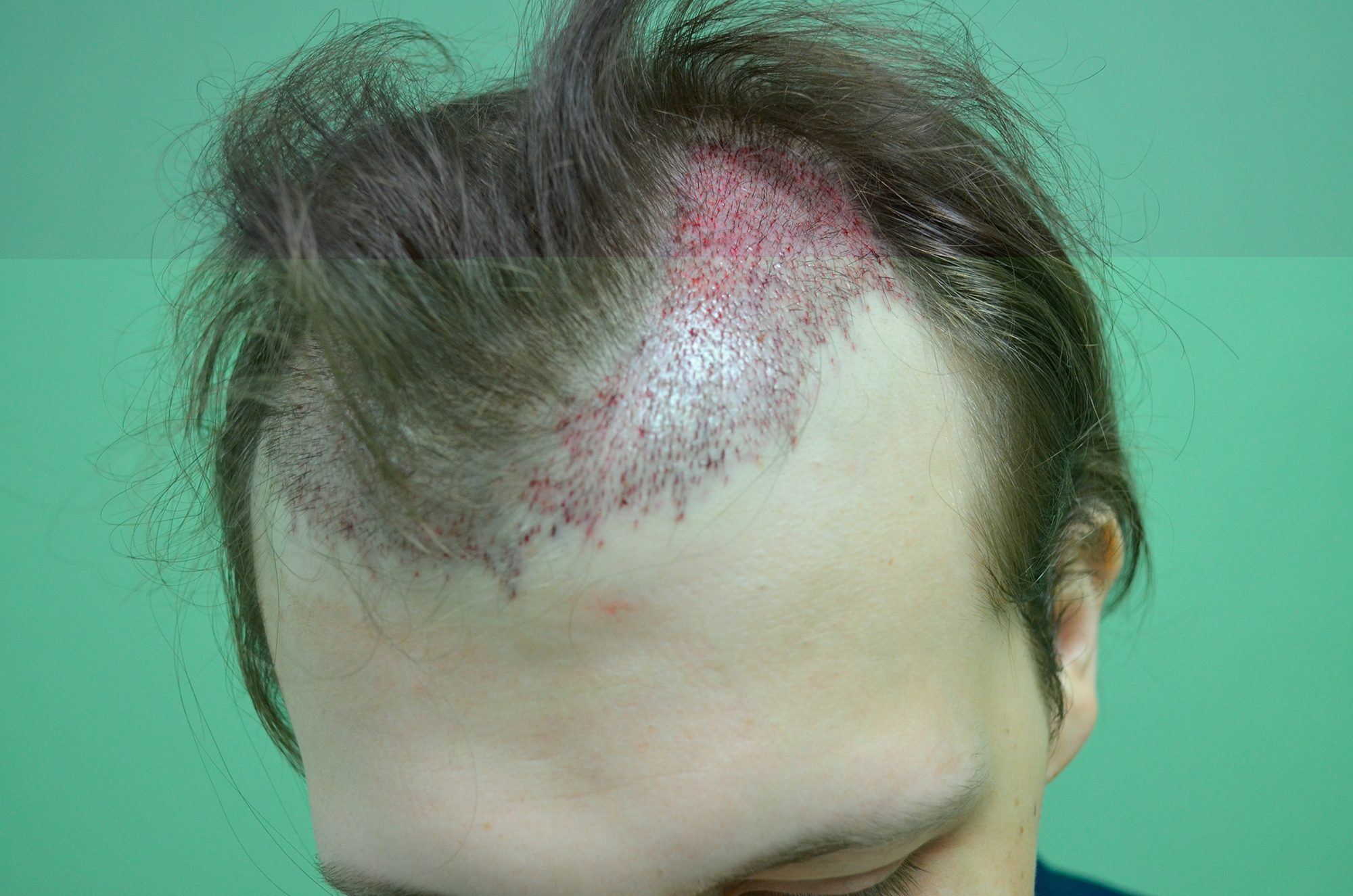 Следующую операцию назначили через полгода и подготовили документы на налоговый вычет. В Москву я вернулся уже в субботу, имея плохо скрываемые следы операции на лице. Послеоперационный период прошел легко. Отеков практически не было, хотя первую неделю немного смущали красные точки на голове.