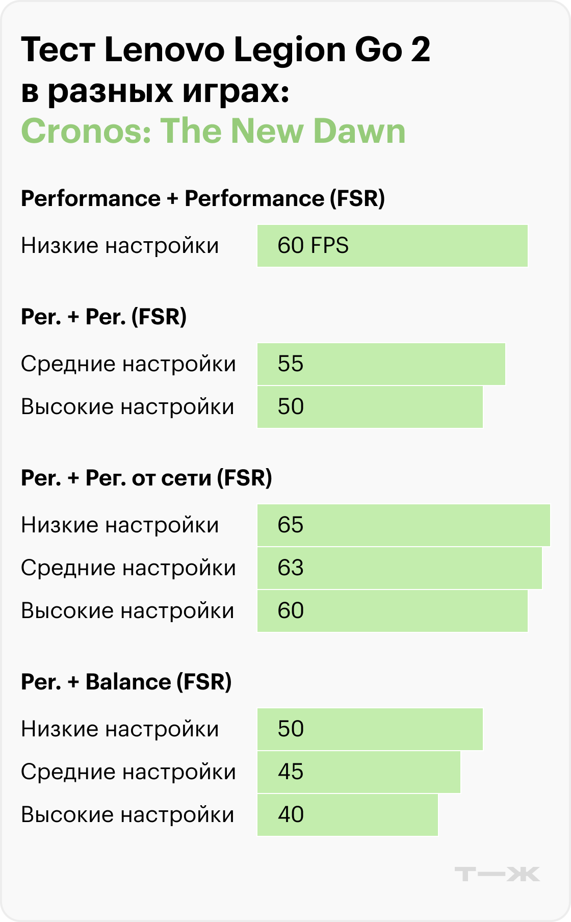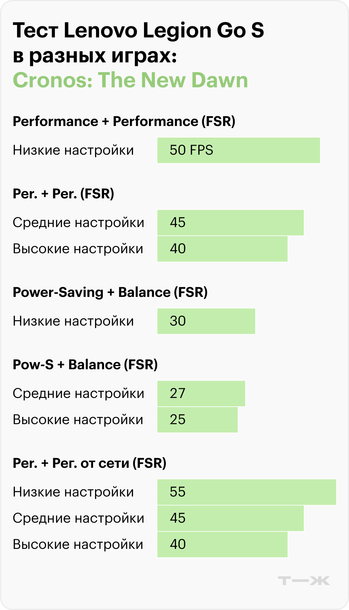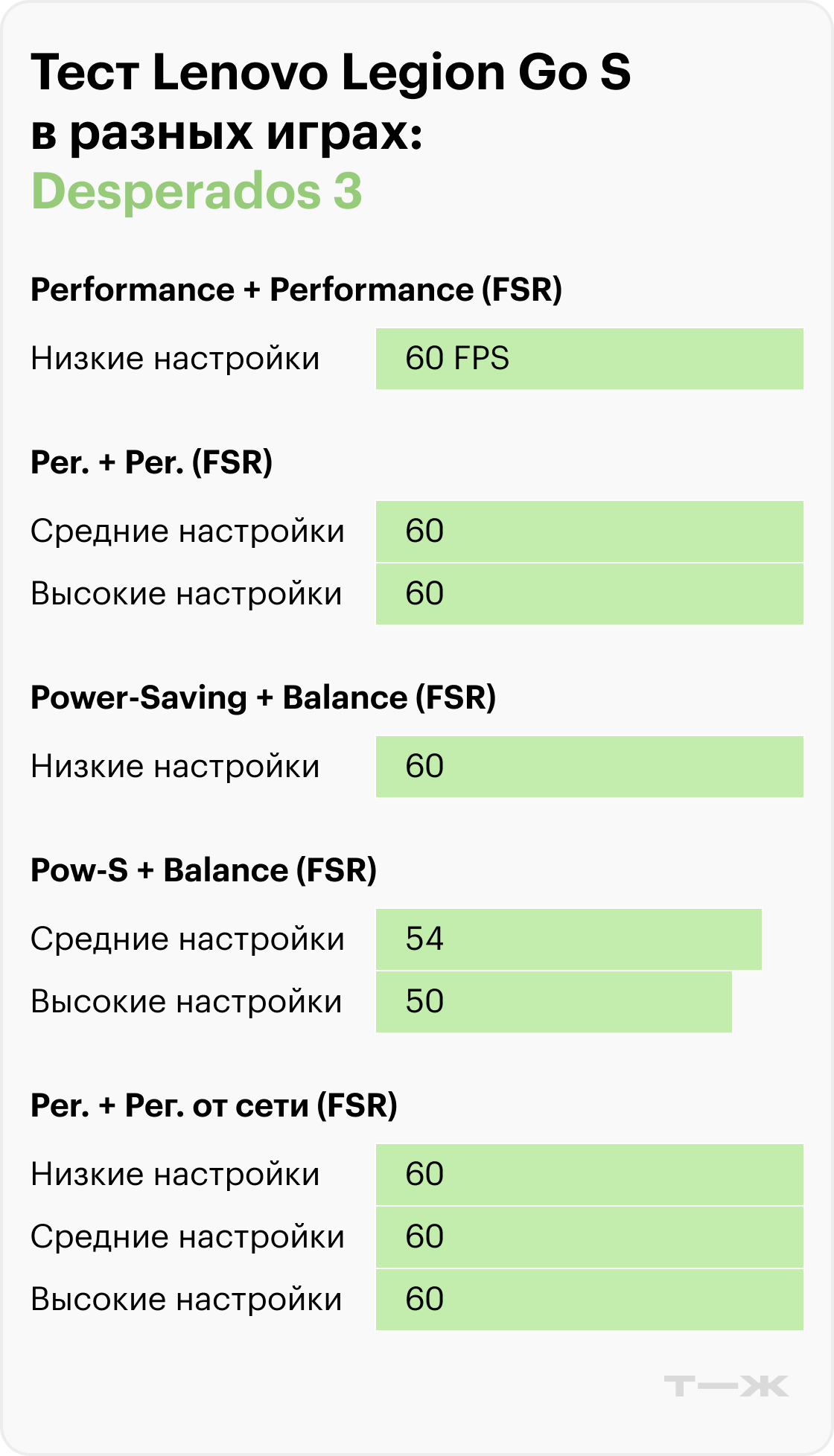 Судя по результатам тестов в актуальных и требовательных играх, производительность Legion Go во многом зависит от разрешения, настроек графики и использования технологий масштабирования.