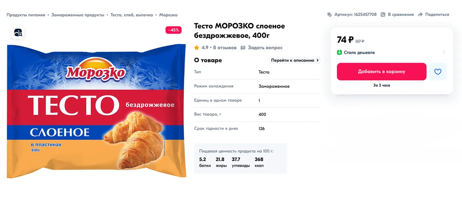 Не всегда хочется замешивать тесто самостоятельно, а иногда на это просто нет времени и технических возможностей. Поэтому некоторые виды можно купить. Например, слоеное — дрожжевое или бездрожжевое, — песочное, тесто фило, тесто для чебуреков и пельменей. Важное правило: всегда смотрите на состав — все ингредиенты должны быть вам понятны.