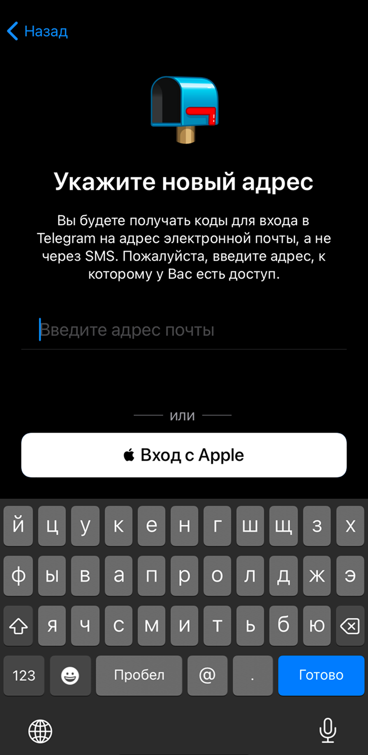 В Telegram тоже можно указать почту. Путь такой: «Настройки» → «Конфиденциальность» → «Почта для входа» → указать почту → «Продолжить» → ввести код из почты.