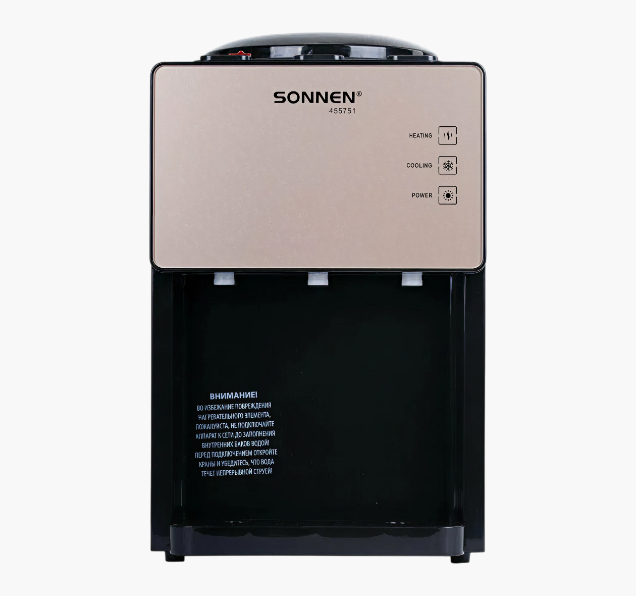 Настольный кулер с тремя температурными режимами подачи воды: комнатная, 15 и 90 °C. Подходит для стандартных 19-литровых бутылок.