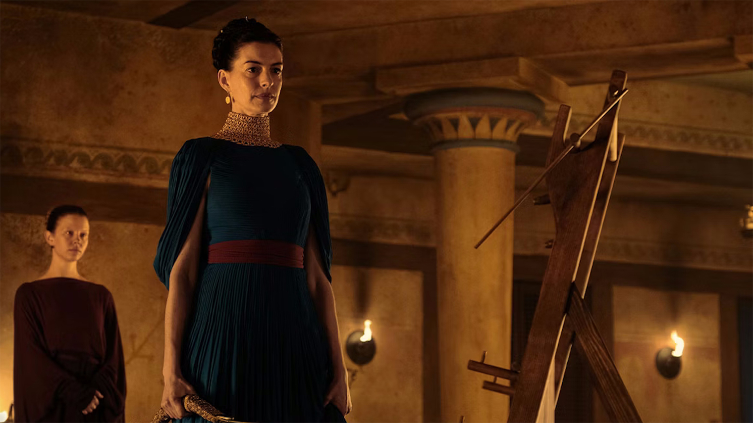 Энн Хэтэуэй досталась роль Пенелопы — жены Одиссея. Она вынуждена не просто годами ждать возвращения мужа, но и отбиваться от женихов. После слухов о гибели Одиссея Пенелопа стала завидной невестой, но она пообещала кандидатам выбрать одного после того, как сделает погребальный саван. На самом деле она ночами распускала материал, чтобы тянуть время.