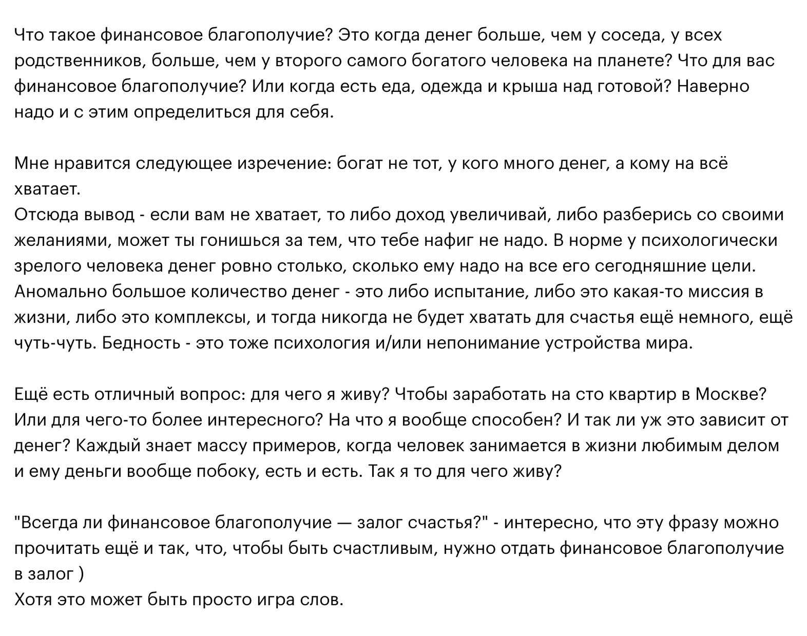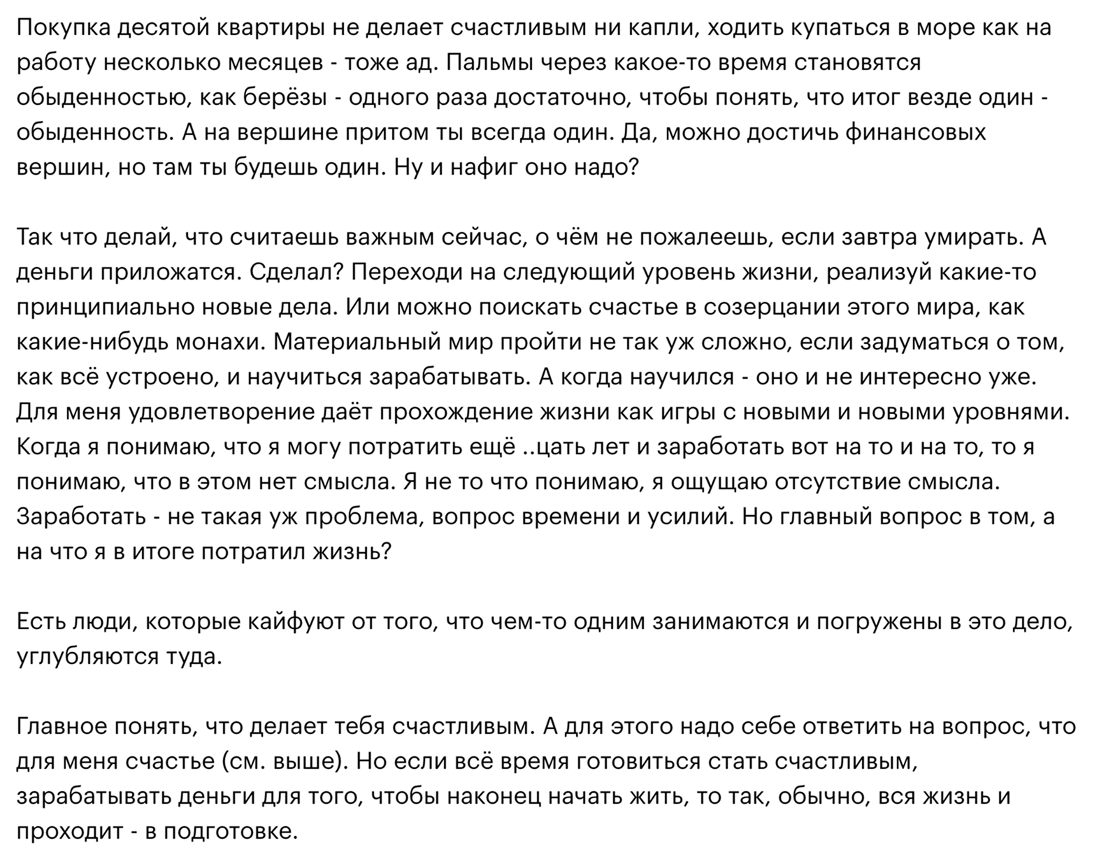 Самый длинный комментарий на 10 тысяч символов написал Алексей к посту, в котором пользователь рассуждает на тему связи денег и счастья. В целом у Алексея огромное количество комментариев длиной под 10 тысяч знаков — обычно к постам на тему семьи, работы, психологии.