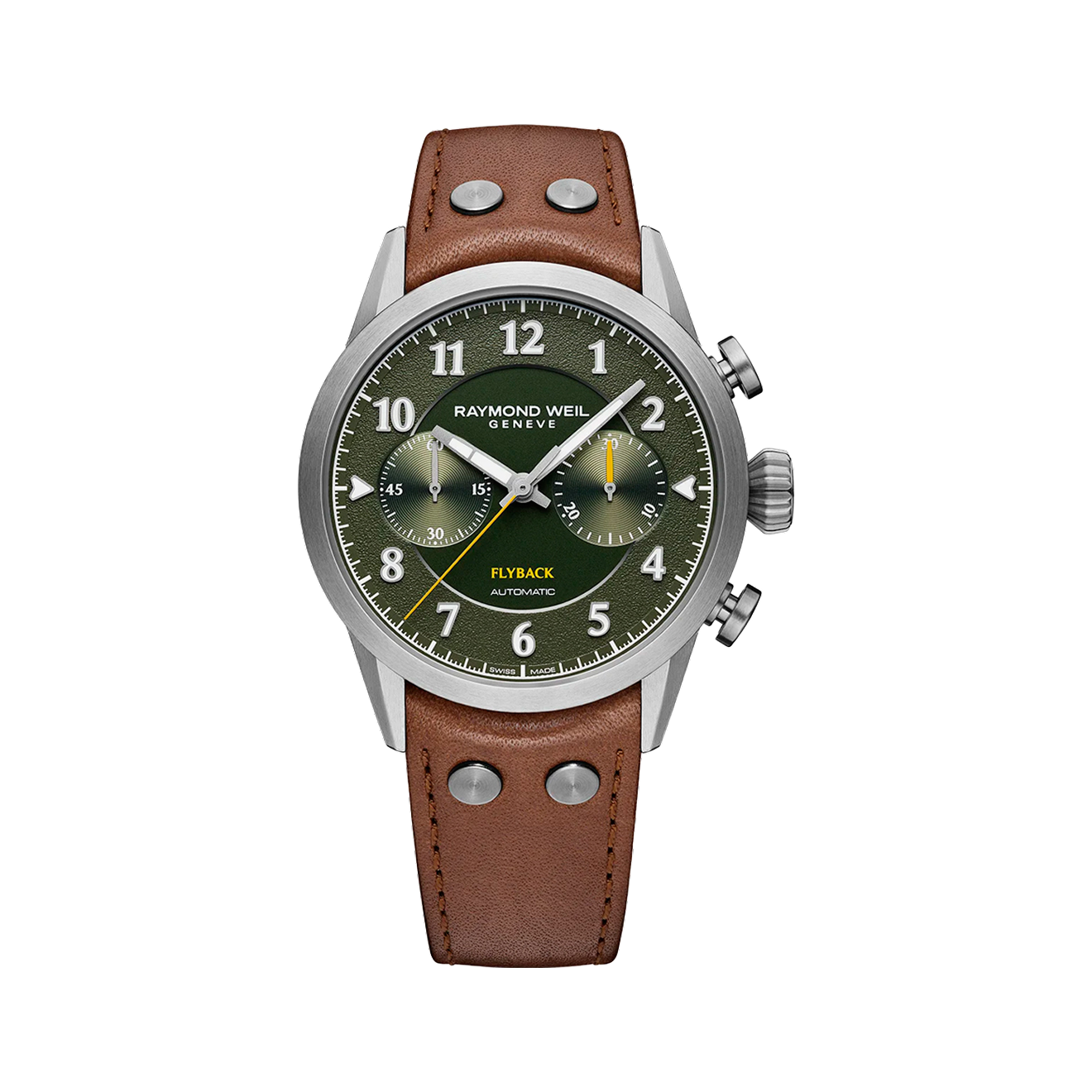 Швейцарскому бренду Raymond Weil всего 50 лет — и даже у него есть собственный флагман среди «авиаторов», 44-миллиметровый хронограф Freelancer с автоподзаводом и запасом хода в 56 часов, который был выпущен количеством всего в 400 экземпляров