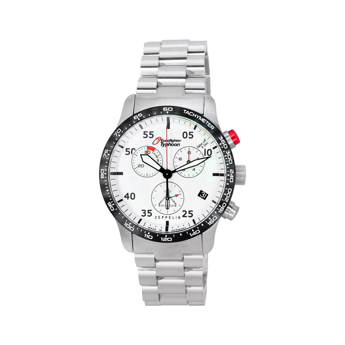 Каждая модель немецкого бренда Zeppelin отсылает к золотому веку воздухоплавания. У Eurofighter Typhoon, вдохновленной одноименным современным истребителем, — редкий для «пилотских» часов кварцевый механизм. Но функция хронографа с секундомером и тахиметром позволяет им не отставать в точности от механических