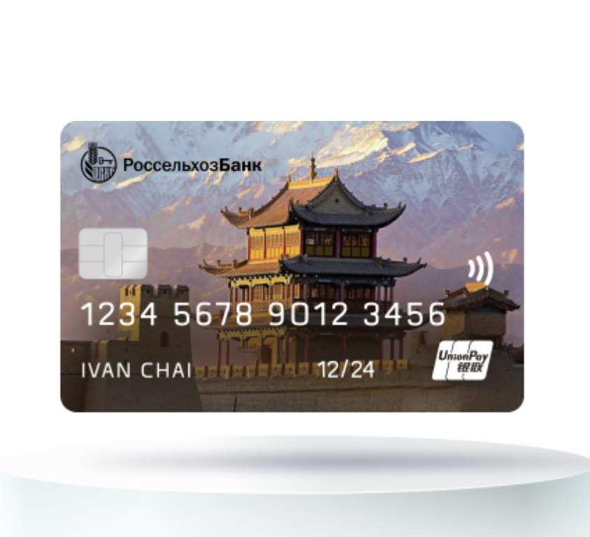 Карта UnionPay от РСХБ. На сайте РСХБ можно заказать карту UnionPay. Я выбрала карту в юанях, ещё есть в рублях, евро, долларах. Я заказывала именную карту, поэтому несколько дней ждала её выпуск. Можно прийти в офис и сделать мгновенную карту, на ней не будет имени и фамилии.