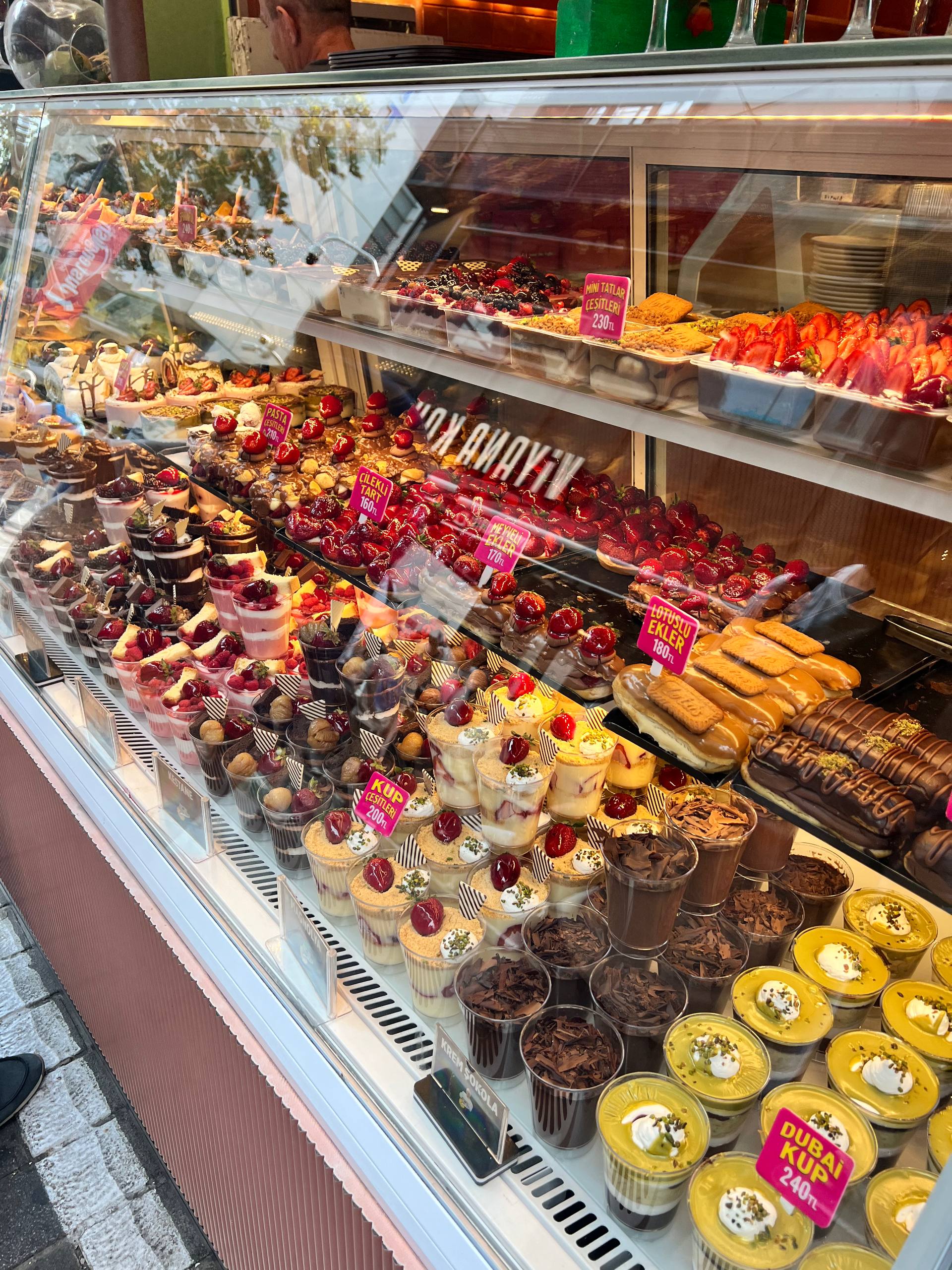 Что попробовать? Тут я покажу на картинках, потому что многие названия на турецком непривычные, но поверьте — если вы любите сладкое, милоту и яркие вкусы, вы окажетесь в раю. Десерты в Kemal Usta Waffles стоят в среднем 250 ₺, так что сразу берите 2–3 штуки — это точно будет лучшей инвестицией за день. Каждый кусочек словно маленький праздник вкуса.