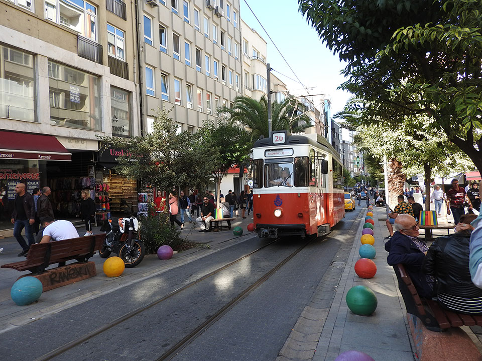 Дальше возвращайтесь обратно на улицу Мода и идите к трамвайной остановке Moda Caddesi. После тихой часовни и спокойной улицы здесь снова чувствуется жизнь: люди спешат, кто-то идёт с кофе, кто-то с пакетами, а трамвай уже подбирает тех, кто двигается дальше по району. На нём можно доехать до центра Кадыкёя, но я бы всё равно советовал потом ещё немного пройтись пешком, потому что именно на этом отрезке лучше всего чувствуется переход от «классического» Кадыкёя к более живому и творческому Yeldeğirmeni.