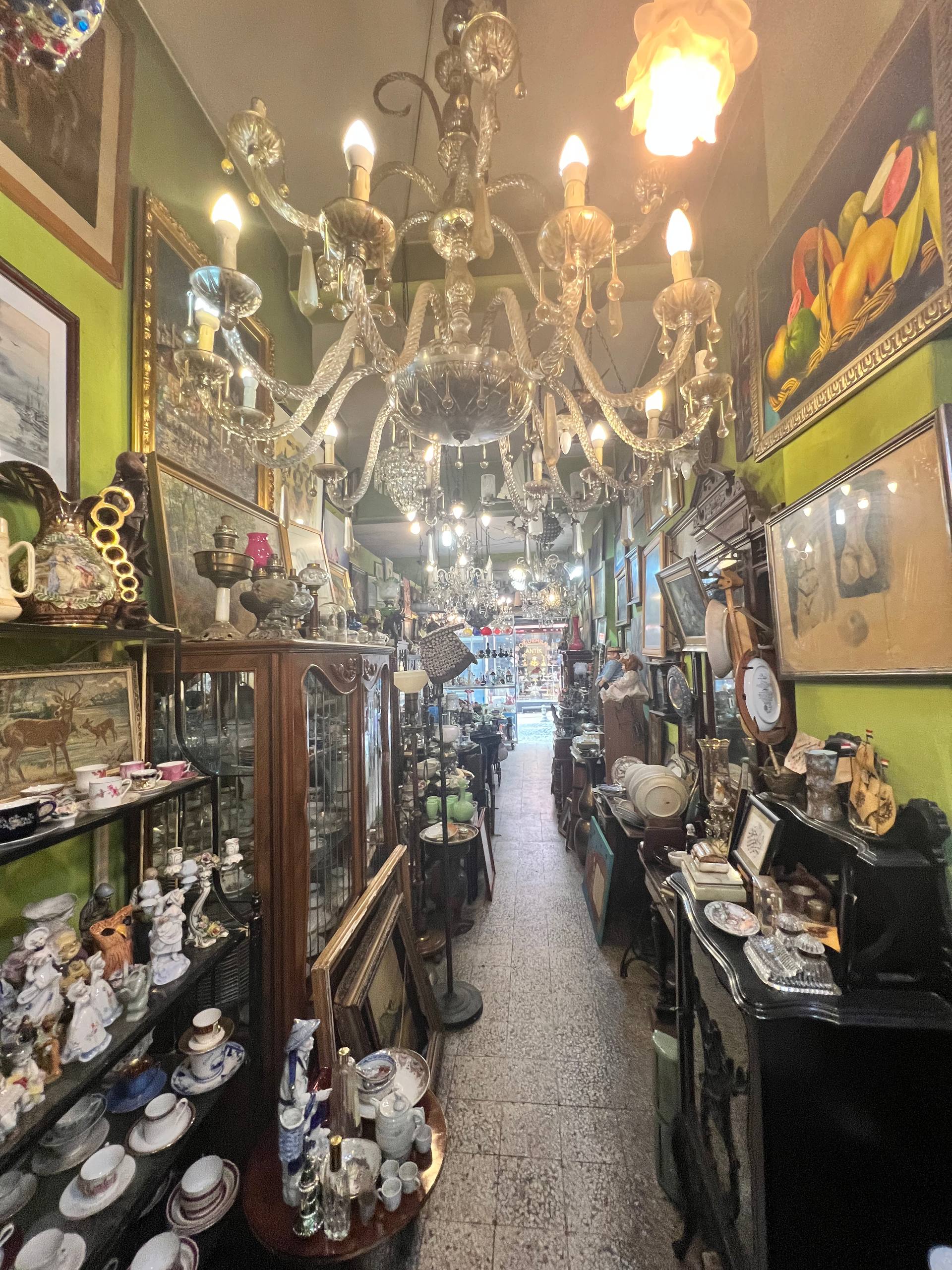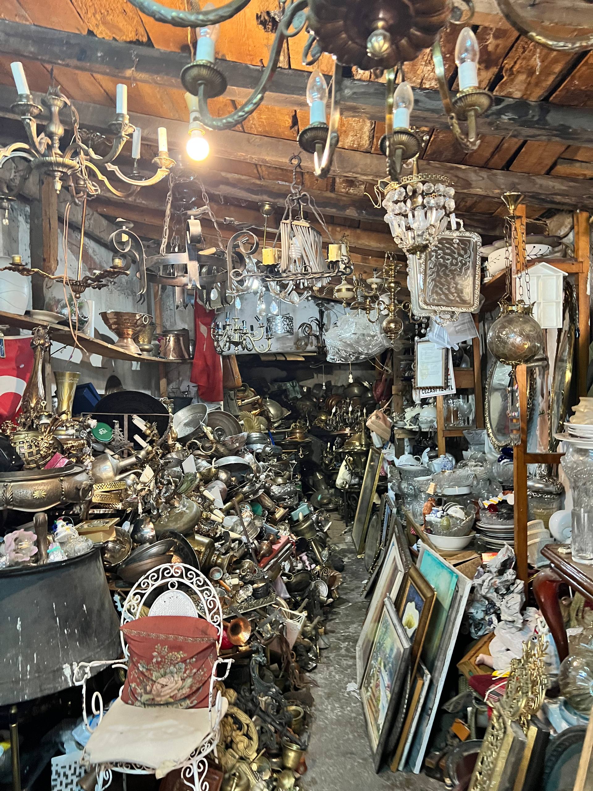 После этого, как настоящие любители антиквариата, мы свернули на улицу антикваров — Tellalzade Sk. Короткая, но невероятно колоритная улочка, заставленная старой мебелью, граммофонами, виниловыми пластинками и всякой всячиной. Тут можно найти бронзовые подсвечники, украшения XIX века, антикварную мебель и даже вещи вплоть до XV века.