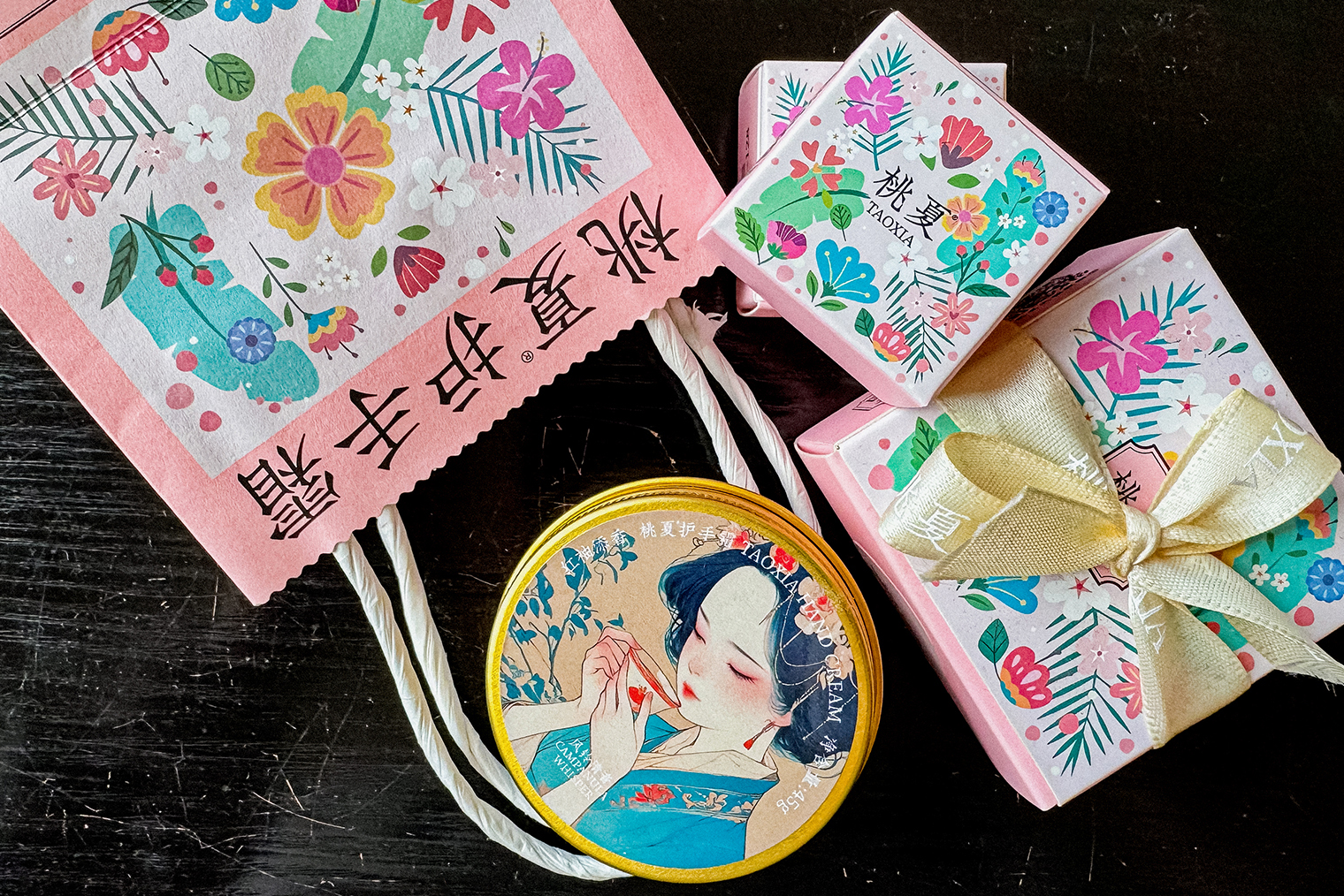 Большая банка стоит 45 ¥ (512 ₽), набор из трех — 125 ¥ (1 421 ₽), маленькая сувенирная — 10 ¥ (114 ₽). На кассе каждый крем упаковывают в коробочку, потом перевязывают ленточкой, складывают в красивый фирменный пакет и на него тоже цепляют бантик.