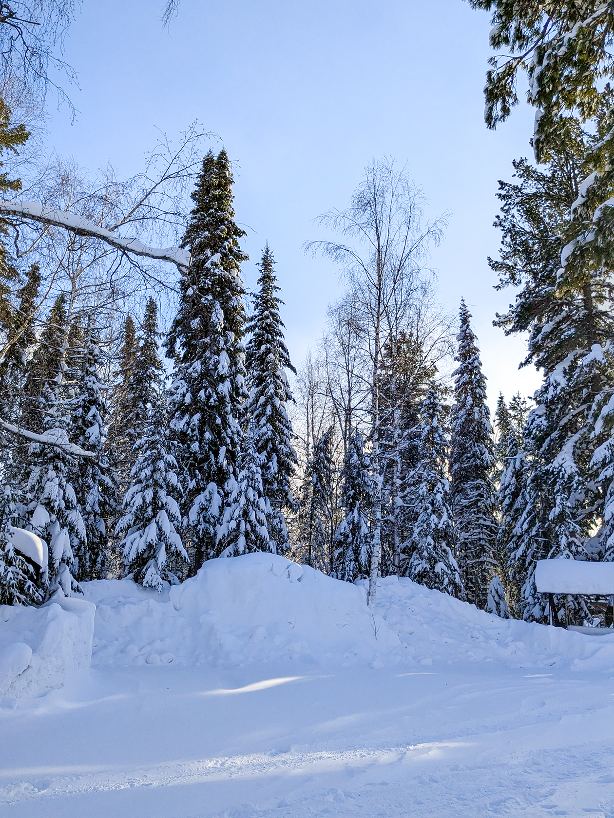 Телефон выключается из-за мороза. Прошу В. меня пофоткать, но в основном приходится все запоминать глазами. Из странного: снег лежит тут очень необычно, елочкой, как будто кто-то налепил его таким образом специально. В этой текстуре ощущается магия.