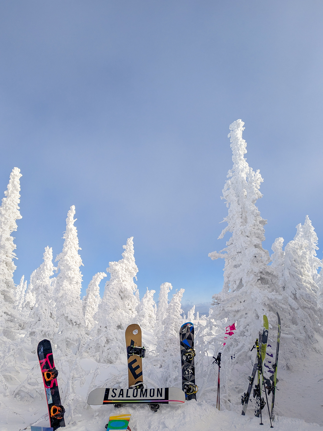 В Шерегеше около −2 °C, ветер не сильный. Вообще, из-за долгой дороги и общей усталости я плохо понимаю, что происходит, но обращаю внимание на количество снега. Его много, и это приводит меня в дикий восторг. Я мерзлячка и не фанат зимы, но сугробы обожаю. Пытаюсь насытиться глазами, ведь по возвращении в Воронеж точно этого не увижу. То, что происходит там, сложно назвать зимой: постоянно туман, температура держится около нуля.