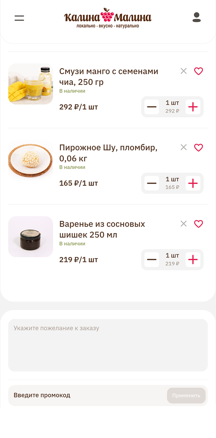 09:00. Подъезжаем к нашему коттеджному поселку. Водитель советует заехать в «Калину-Малину» — магазин местных продуктов с большим выбором готовой еды. По разнообразию похоже на «ВкусВилл», только дешевле. −1 307 ₽